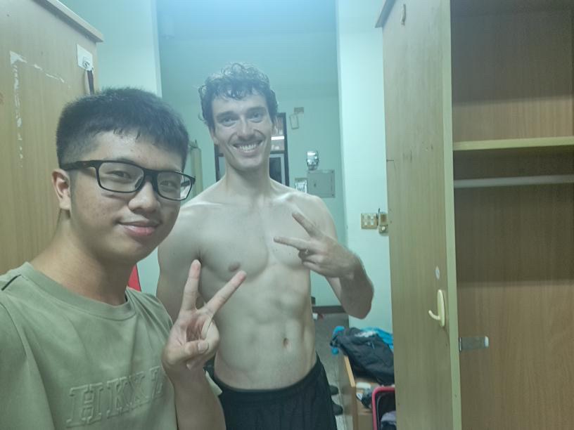 Im Dorm lerne ich endlich meine beiden neuen Roommates kennen, das vierte Bett bleibt vorerst leer. Edward „Sky“ (so soll ich ihn nennen) schüttelt mir direkt die Hand, macht einen sehr freundlichen Eindruck und erzählt mir, dass er Indonesier ist und froh ist, Leute kennenzulernen. Den Namen des anderen Mitbewohners erfahre ich vorerst nicht, bzw. verstehe ich ihn akustisch nicht. Er ist derjenige, dem der PC und der unordentliche Koffer gehört. Er hat seinen Stuhl ganz nah an den Tisch herangeschoben, sitzt mit Knien am Kinn darauf und guckt auf den Bildschirm, der ungefähr 10cm vor seinen Augen ist. Sein Blick ist nicht gerade freundlich, bestenfalls neutral. Nach ein paar Sekunden setzt er sein Headset auf und schaut irgendwelche Videos. Als er rausgeht, um zu duschen, erzählt mir Sky, dass der andere Roommate sehr unfreundlich sei und sich weigert irgendwas aufzuräumen. Er habe sich sogar schon zweimal beim Office über die Unordenrlichkeit beschwert und zeigt mir ein Foto von Tag des Einzugs (gestern!), auf dem das Zimmer wirklich schlimm aussieht. Ich tausche mit Sky Nummern aus und wir reden ein bisschen darüber wo wir herkommen, was wir machen usw. Wir sind glaub ich beide sehr froh, jemandem im Zimmer zu haben, mit dem wir uns verstehen.