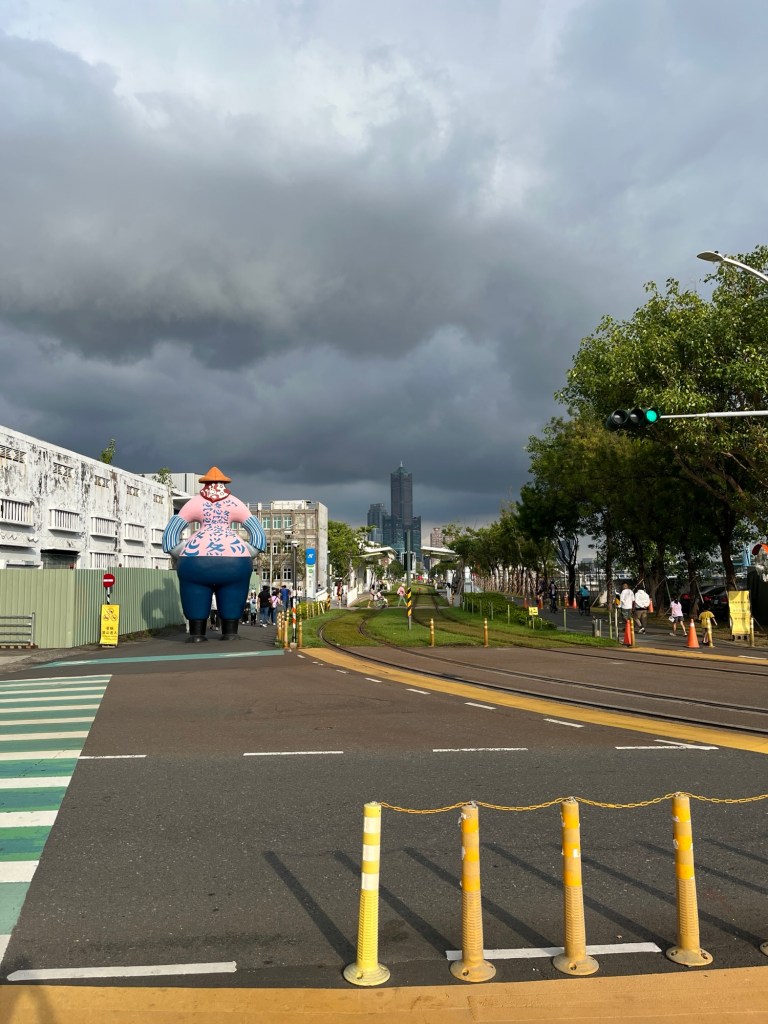 Anschließend sehen wir einen Straßenkünstler, der für kleine Kinder auftritt, einen kleinen Straßenmarkt, wo ich eine neue Sorte Bubble Tea probiere, und, überall stehen lustige Skulpturen herum, die meisten sind übergroße Maskottchen, es ist aber auch eine Art Transformer dabei.