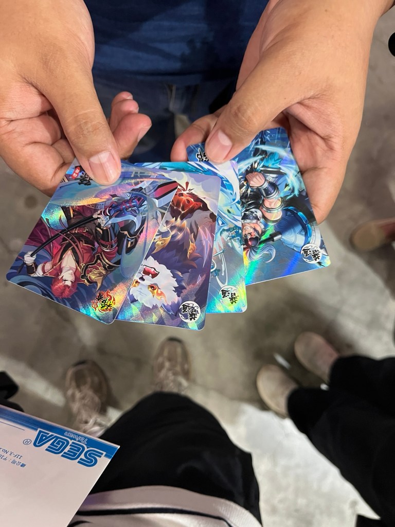 Das Areal, in dem wir sind, besteht aus einigen mehr oder weniger zerfallenen Backsteingebäuden, die auf interessante Weise genutzt werden. Toiletten, Museen, riesige Grafitti und eine Zockerhalle, die sich „Card Games Event“ nennt. Da müssen wir doch mal unbedingt rein. Ich war noch nie auf der Gamescom, aber das hier ist bestimmt eine Mini-Version davon. Auf einer Bühne treten zwei Jungs in irgendeinem Videospiel gegeneinander an, während die Menge ihnen zuschaut, viele viele Spielautomaten (natürlich hat alles einen Bezug zu Kartenspielen, bspw. Pokémonkarten) werden von Spielenden bedient und alles wird beschallt von den diversesten Videospielsounds.