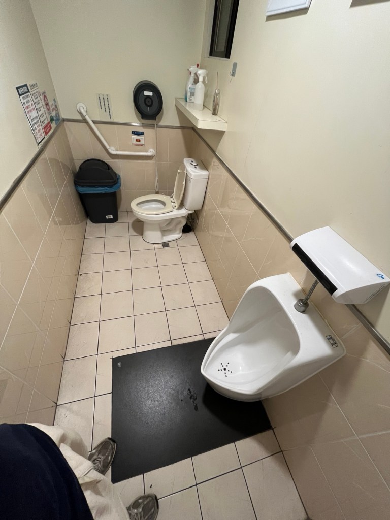 Wo wir schon über Supermärkte sprechen: Was ich hier sehr schätze, sind die ganzen Möglichkeiten, kostenlos eine öffentliche Toilette aufzusuchen. In ausnahmslos jedem Supermarkt und auch jeder Bahnstation sind die WCs deutlich ausgeschildert, die sind gratis und sie werden auch mehrmals täglich gereinigt, sodass man sich vor dem Losgehen von Zuhause eigentlich keine Gedanken machen muss, wann man das nächste Mal an einer Toilette vorbeikommt. Was lustigerweise total fehlt, sind öffentliche Mülleimer. Gerade da man unterwegs durchaus mal etwas zu trinken kauft oder sonstwie an Müll gelangt (da alles doppelt und dreifach in Plastik verpackt ist…), passiert es schonmal, dass man die Hände voller Verpackungen hat und nicht weiß wohin damit. Tatsächlich kann man es wohl im Supermarkt ohne Weiteres an der Kasse abgeben, erzählt mir James. Außerdem hat jede öffentlich Toilette einen Mülleimer, das ist der Geheimtipp. Im Dorm ist die Situation so, dass jeglicher Müll in eine der Mülltonnen auf der Straße vor dem Gebäude geschmissen werden soll.