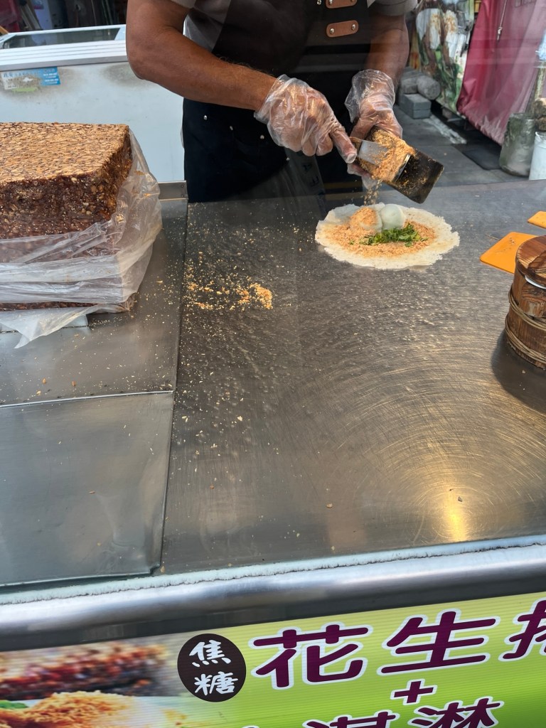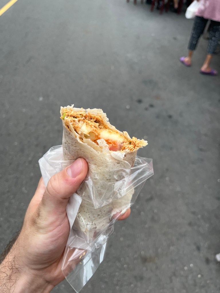 Gerade übergesetzt, sehe ich direkt wieder irgendwelche Straßenstände, wie bei einem Night Market, nur dass noch helllichter Tag ist. Das Land ist überschwemmt mit Street Food!! Na guut, dann probiere ich halt noch eine Spezialität. „Spring Roll with ice“, eine ganz besondere Kombination verschiedener Geschmäcker. Ich kann mich nichtmal sagen ob ich das lecker finde oder nicht.