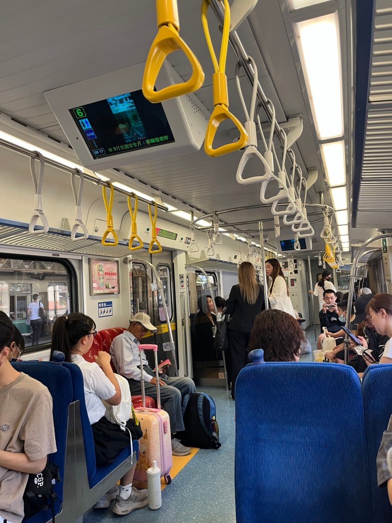 Dazu nehme ich das erste Mal einen der schnelleren Züge, am ehesten vergleichbar mit einem Regio aus Deutschland. Die Plätze sind in ihm verteilt wie in einer U-Bahn, nur dass sein Schienennetz über das ganze Land verteilt ist und er an weniger Stationen hält. Ansonsten bezahle ich wie immer mit meiner EasyCard, an einer Art Schleuse.