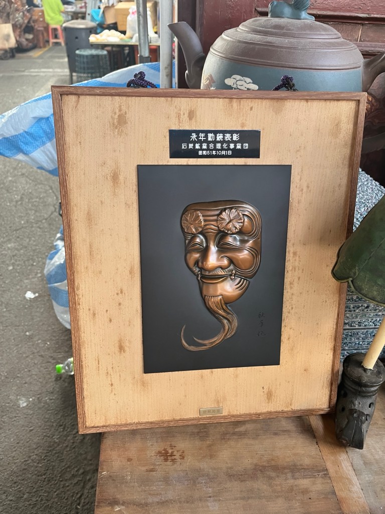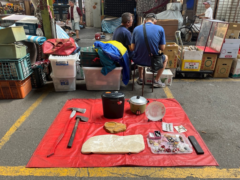 Auf dem Flohmarkt kommen wir unter eine große überdachte Halle mit riesigen Ventilatoren unter der Decke. Die Verkaufsstände sind teilweise dicht gedrängt, trotzdem zwängen sich ab und zu Motorräder und sogar ein Auto ihren Weg hindurch. Was verkauft wird, ist stark standabhängig. Häufig sind es Deko-Gegenstände, aber auch große Gemälde, Schallplatten/CDs, einige Tshirt-Stände und Schmuckwaren sind zu sehen. Meine Hoffnung, etwas für die blanke schmutzige Wand in meinem Zimmer zu finden, erfüllt sich nicht ganz. Die Motive auf manchen Bildern treffen zwar meinen Geschmack für Humor, aber sie sind entweder zu groß oder können nur mit einem Nagel befestigt werden, was im Dorm garantiert ein No-Go ist.
