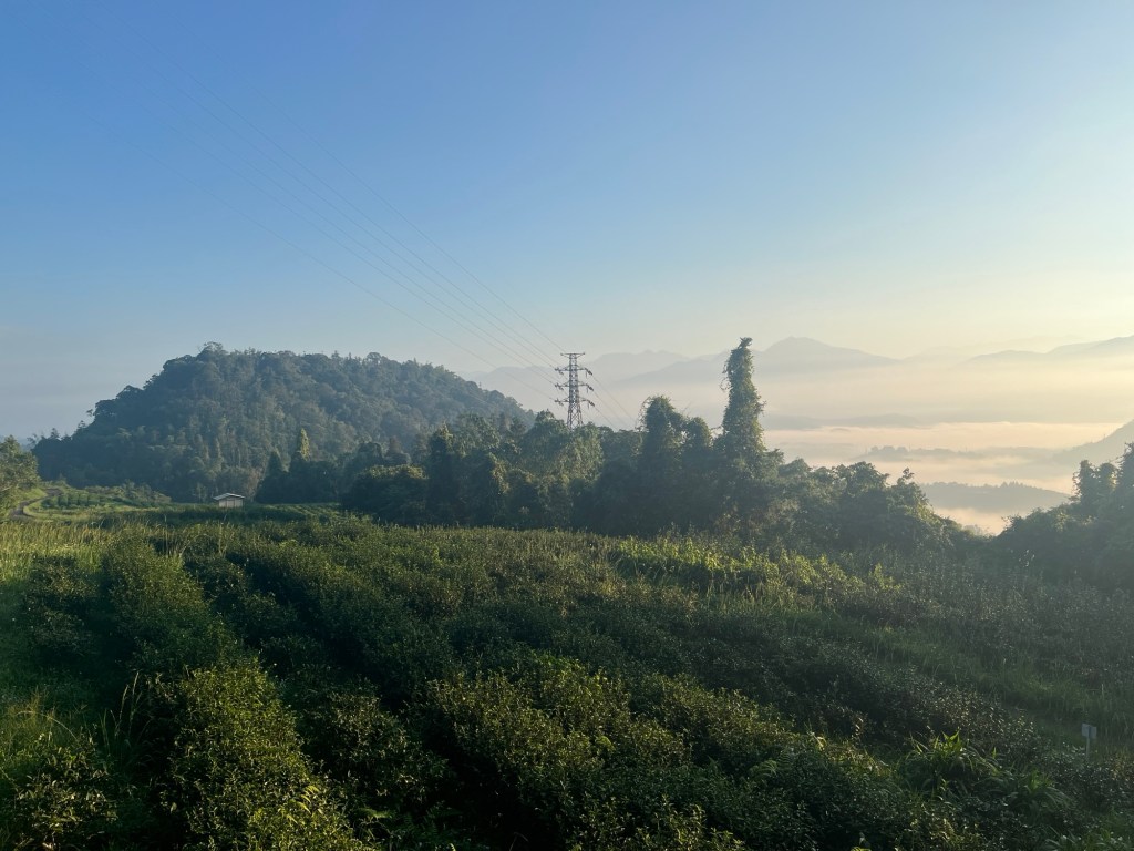 Um einigen Bienen zu entkommen, gehe ich danach ein Stückchen weiter runter, bis ich an eine größere Teeplantage gelange. Auf dem Weg begegnen mir zunehmend mehr Wanderer, unerwartet viele Taiwanesen. Sie scheinen auf jeden Fall auch ein Wandervolk zu sein und sie grüßen so gut wie immer freundlich, das ist mir sehr sympathisch. Allerdings verstehe ich nicht, dass wenn man schon so früh aufsteht, nicht gleich den Sonnenaufgang mitnimmt. Das ist, als würde man einen Marathon kurz vor dem Ziel aufhören. Aber vielleicht findet man den aufgehenden Feuerball auch nicht mehr so spannend, wenn man hier wohnt.