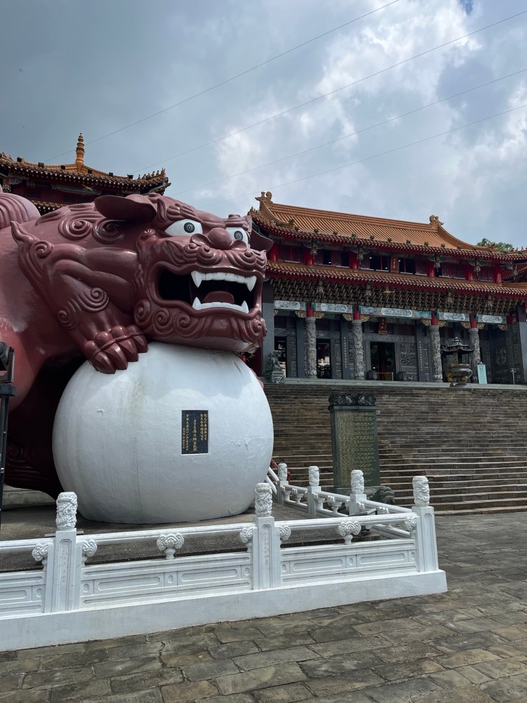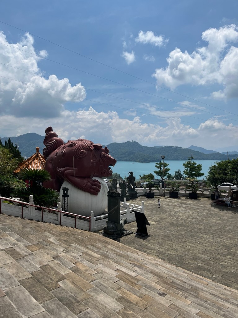 Wir machen uns dann beide soweit fertig, packen unsere Rucksäcke und geben sie unten im Flur ab. Wir wollen uns noch den Wenwu-Tempel anschauen, bevor es heute Nachmittag zurückgeht. Das riesige Bauwerk mit den vielen orangenen Dächern und einer Konfuzius-Gedenkstätte konnten wir gestern schon aus der Ferne beobachten, ein Must-See am Sun Moon Lake.