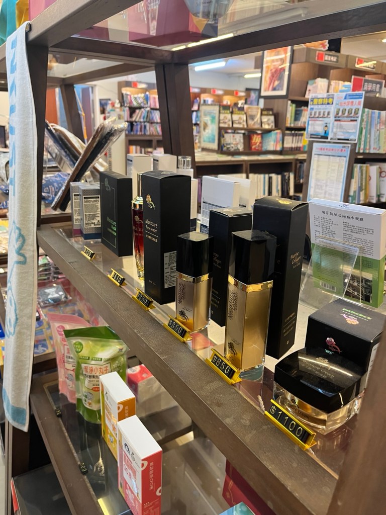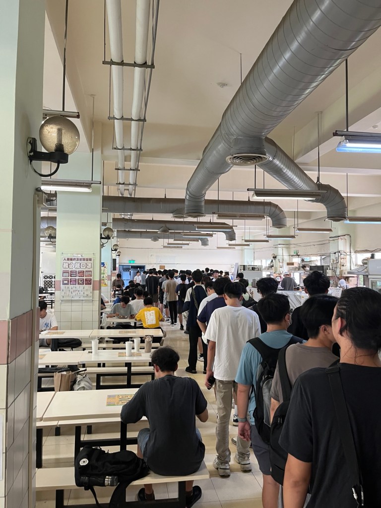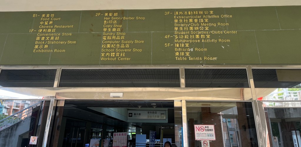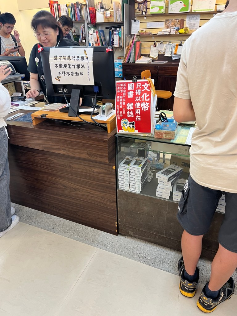 Ich habe vor, wie letzte Woche auf Bugi zu warten und gehe nochmal ins Hauptgebäude, mich umschauen. Auf jeden Fall will ich den Schreibwarenladen besuchen, der Blöcke und andere nützliche Sachen hat. Ich finde ihn über der Mensa und stöbere durch die Regale. Es dauert zwar deutlich länger, in taiwanesischen/chinesischen Läden nach Produkten zu suchen, aber es ist auch immer sehr spannend, da man bis zum Einscannen mit Google Lens meistens nur eine grobe Ahnung hat, was hinter der Verpackung steckt. Stifte und Blöcke erkennt man natürlich sofort, klar, aber so gut wie alles in diesem Land ist ja doppelt und dreifach in Plastik eingepackt und mit lustigen Cartoonzeichnungen versehen, wie ich (glaube ich) schon öfter dokumentiert habe.