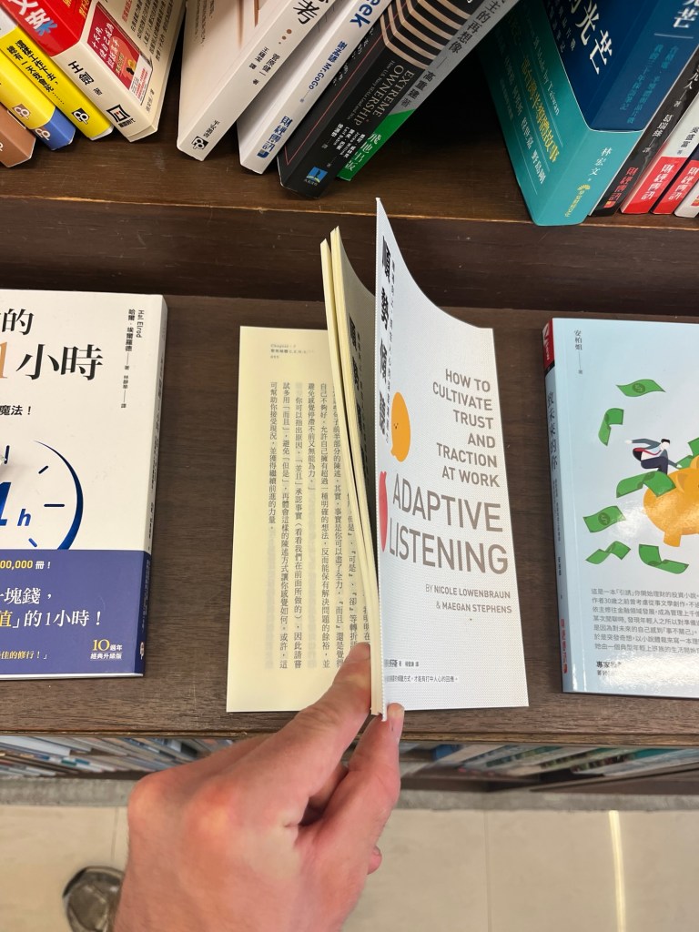 Der Vollständigkeit halber schaue ich mir die Bücherabteilung an. Wie erwartet gibt es hier in erster Linie chinesischsprachige Bücher, wobei fast jedes Cover auch in Englisch angezeigt wird. Die einzigen Wälzer in anderen Sprachen sind Sprachbücher, bspw. in englisch oder koreanisch.