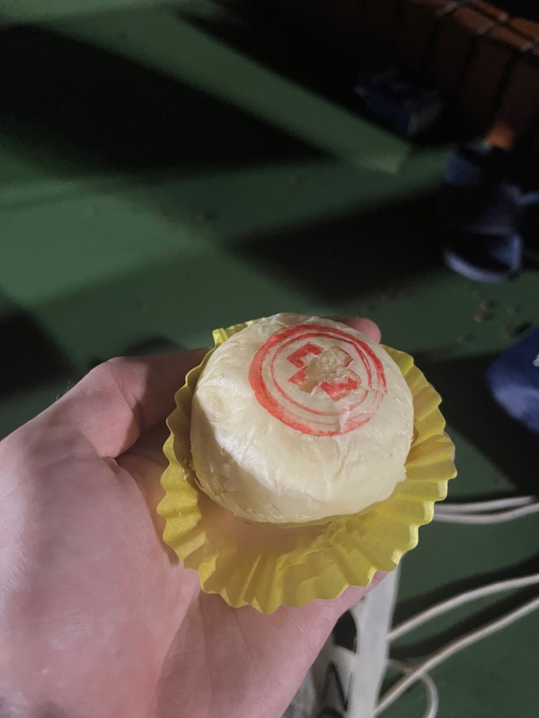 Zum Schluss will der Trainer, dass ich für alle auf Deutsch bis zehn zähle. Mache ich gerne, die Runde spricht es mir nach. Für einzelne Wörter bekomme ich Fragen, wie sie genau ausgesprochen werden. Außerdem werden mir chinesische Sätze beigebracht. Ich lerne, wie ich „Ich will alles haben!“ und „Ich habe Hunger!“ sagen kann. Außerdem einen Satz, der fast nur Lachen auslöst. Edward gibt am Ende noch Mondkuchen aus, vermutlich anlässlich des Mondfests nächsten Montag. Dann ist es aber wirklich vorbei.