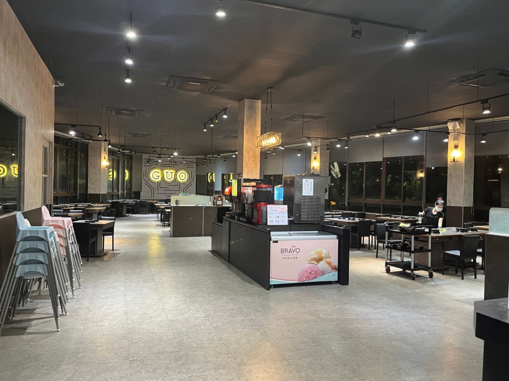 Das Restaurant bietet die berühmten Hot Pods an, an jedem Tisch befindet sich so eine Vorrichtung mit Gasschalter am Tischrand. In der Mitte des Ladens steht eine Foodinsel, die komplett all you can eat/drink ist. Hauptsächlich Getränke, aber auch unbegrenzt Speiseeis, Reis, Gewürzpasten und Instant-Nudeln für das Restwasser im Hot Pod stehen bereit. Das reinste Paradies, aus Deutschland kennt man sowas ja eher weniger. Der billigste Hot Pod kostet nur um die 150$TD (4,30€), ein richtiges Schnäppchen. Dazu ist der Laden total leer, angeblich gibt es sehr viele ähnliche Orte, sagt Byran.