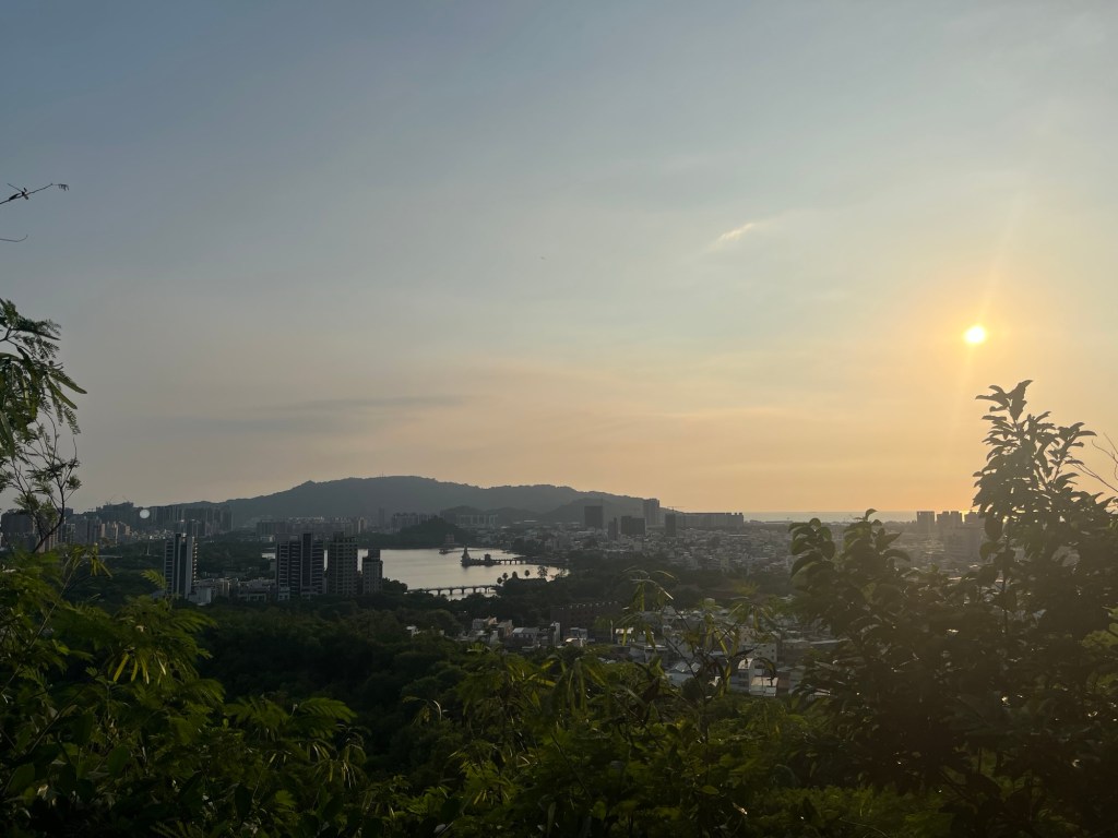 Weil seine Frau Taiwanesin ist, natürlich, was auch sonst, leben die beiden drei Monate im Jahr in Kaohsiung, die restlichen neun in den USA, wo er herkommt. Tom, so sein Name, will wissen, wo ich studiere und warum ich mich für Taiwan entschieden habe. Er ist erstaunt, dass ich schon im Bunker dieses Berges war und auch ich wundere mich, dass ich fast alle seine Vorschläge, u.a. Cijin Island und Shoushan National Park, schon besichtigt habe. Taiwan sei toll, sicher, geringe Lebenskosten, wenn man von den Mieten, auch in Kaohsiung City, absieht. Er wohnt recht nah am Berg, acht Minuten mit Motorrad, zum Hafen sind es nur um die 20. Den Bunker habe er über das Internet gefunden, es gibt da so einen Asiaten, der lost places ausfindig macht und sie im Blog-/Vlog-Format ins Internet hochlädt. Wie der denn heiße? Keine Ahnung, aber bei sich am PC poppt der irgendwie immer auf, wenn er ein, zwei Schlagwörter bei Google eingibt. Von irgendeinem Ort will er mir Bilder zeigen, aber er sagt schon, „I am not so good at my phone.“ Statt in der Kachelansicht seiner Galerie wischt Tom mit seinem schwitzigen Finger jedes einzelne Bild von links nach rechts, sodass ich neben Freunden vom Moonfestival auch seine Frau an verschiedensten Orten sehe, im Restaurant, zuhause, auf einem IKEA-Sofa. Dazwischen immer mal halb unscharfe, doppelte oder mit von Bäumen versperrte Sicht-Bilder. Macht mich nur ein bisschen verrückt. Aber gut, zehn Minuten vor Sonnenuntergang muss er los, er wünscht mir noch eine tolle Zeit, vielleicht sehe man sich hier ja mal wieder. „Welcome to Taiwan!“, sagt der, der nur ein Viertel des Jahres hier ist, genau mein Humor. Aber vielleicht zieht er das ja genauso durch wie André und Ingo seit 20 Jahren.