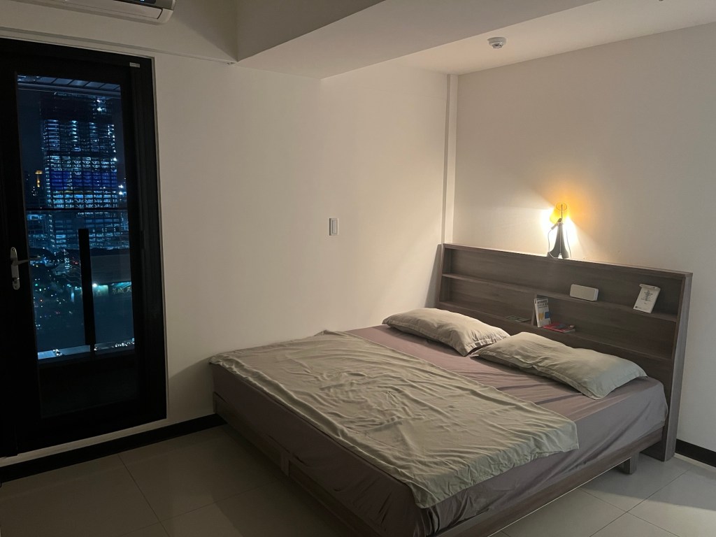 Die Wohnung ist (offensichtlich) nicht großartig eingerichtet, aber die hohe Lage macht das schnell vergessen. Außerdem kann man bei Bedarf den Saloon im 28. Stock besuchen oder gleich eins höher auf die Dachterasse, die drei verschiedene Pools hat.
