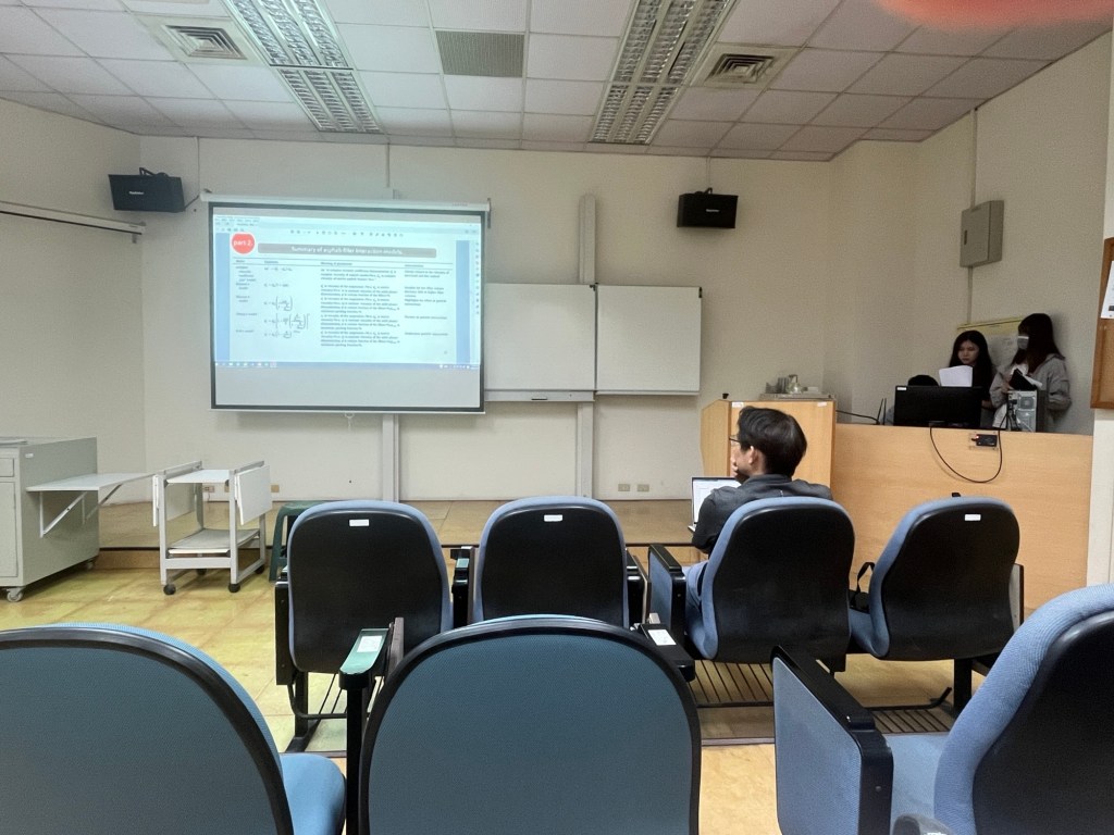 Die AC im kleinen Vorlesungssaal ist dermaßen kalt, dass ich wie andere schnell friere. Aber erst nach einer guten Stunde erbarmt sich ein Student in Windbraker mit Kapuze, die Fernbedienung zu suchen und machtvoll anzuwenden. Währenddessen starten die Vorträge, Gruppe für Gruppe. Mister Lin setzt sich in die erste Reihe und öffnet seinen Laptop für Notizen, während die gut 16 Studierenden in den hinteren Reihen gammeln und mehrheitlich in die Quadratkiste glotzen, mich eingeschlossen.