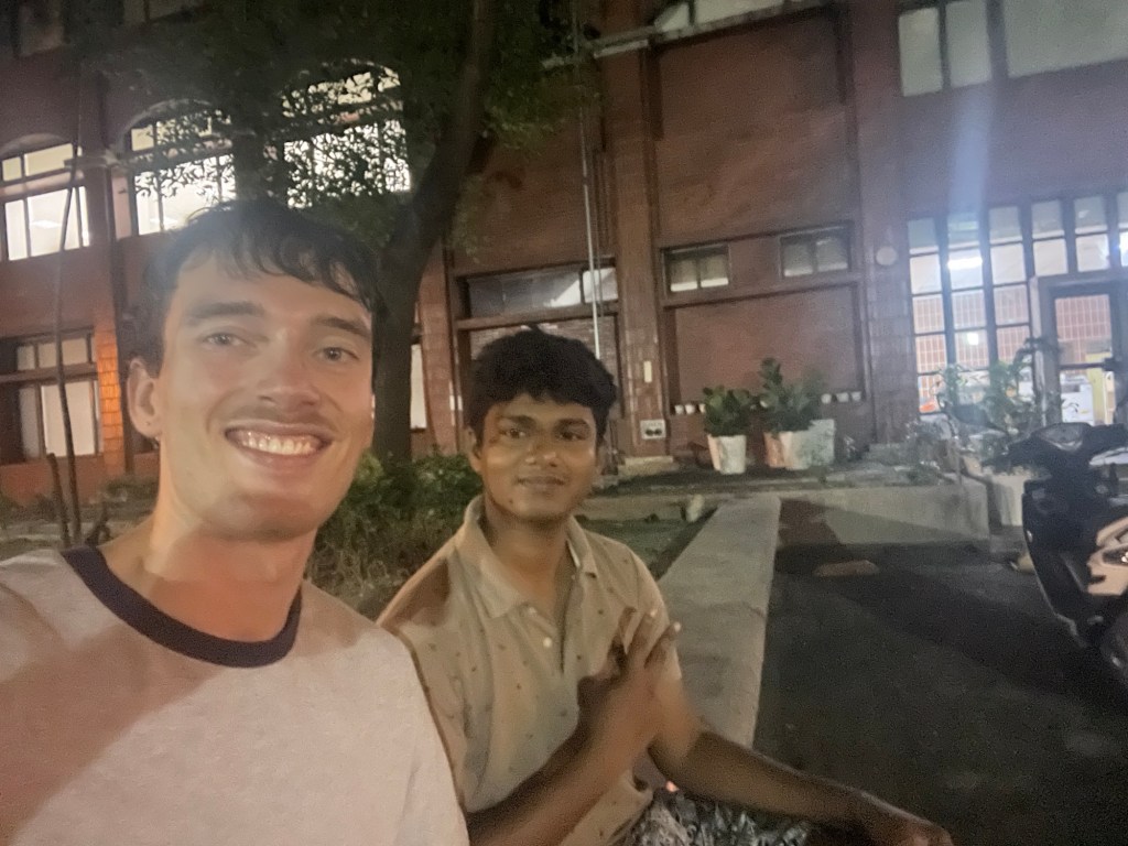 Bevor ich mich auf den Rückweg begebe, setzen wir uns noch kurz nach draußen. Mohan ist am Samstag wie wahrscheinlich alle Inder in Taiwan auf Cijin Island, um dieses indische Festival zu feiern, zu dem ich schon von Sidd eingeladen wurde. Er will mich dort auch finden, sagt er. Für meinen Blog machen wir noch ein Selfie.