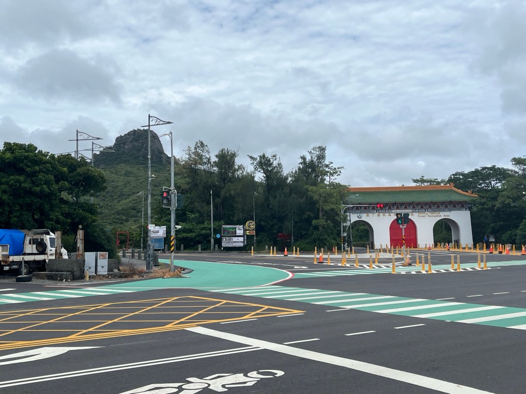 Auf der breiten Asphaltzunge, die kaum von Fahrzeugen genutzt wird, begegnen uns mehrheitlich Fahrradfahrer. Viele Sporträder, die nach Tagestour aussehen, wenige Tourbikes, die nach Inselumrundung aussehen und ein mittelaltes Pärchen auf einfachen Rädern, die verdächtig deutsch aussehen. An einer Ausblick-Ausbuchtung halten die beiden ebenfalls. Verena fragt intuitiv auf Deutsch, ob sie ein Foto der beiden machen soll. Fast richtig: sie kommen aus Salzburg. Das strenge Asien-Urlaubsprogramm wurde durch schlechtes Wetter entschieden gestört. Palau musste deshalb gänzlich abgesagt werden, entsprechend schlecht ist die Laune der Frau. Auch Taiwan hat in ihrer bisherigen Woche an den bisherigen Orten nur Regen zu bieten gehabt, Pech. Für Kenting haben sie aber einen Tipp: die Bergwanderung hinter dem weißen Torbogen soll zu Bergkorallen führen, das klingt faszinierend.