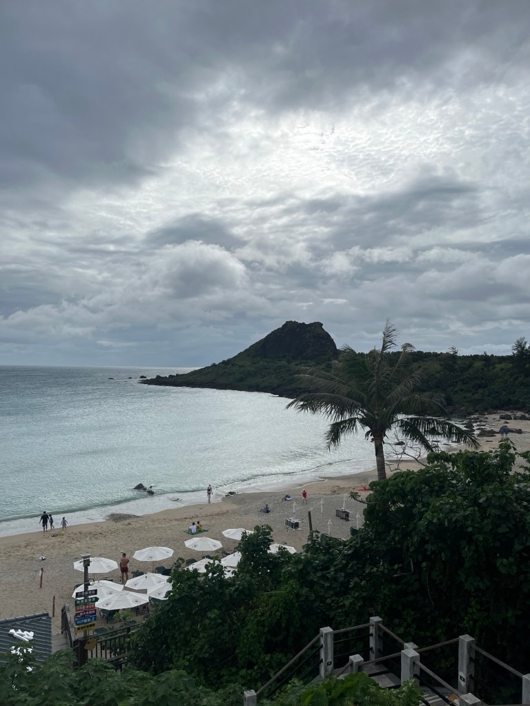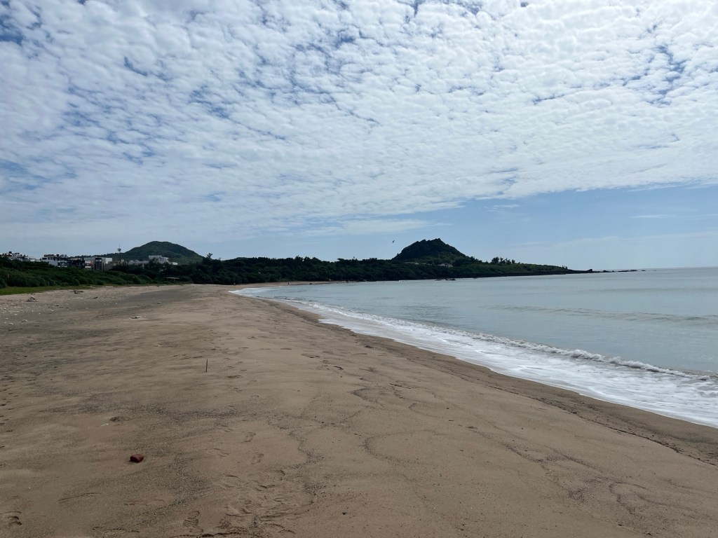 Das Wetter ist ziemlich bewölkt, um nicht zu untertreiben, und es windet recht stark. Es schafft einen ungewohnten Abkühleffekt zu den 30 Grad, die trotz dessen herrschen. Am Strand, der sich weit erstreckt, sieht man eine handvoll Leute, die unter der Woche entweder als (wahrscheinlich deutsche) Touristen Urlaub machen oder als Taiwanesen Müll einsammeln, sehr löblich. Nach fast zwei Stunden im Sand liegen nehmen wir uns YouBikes und erkunden die Küste Richtung Süden. Nach jeder Bergkurve erscheint ein neuer Abschnitt, der weichen Sandstrand, witzige Hügelformen und natürlich, Hotelanlagen bietet. Kein sehenswertes Strandparadies ohne die üblichen Massentourismusbunker. Wenigstens sind es in Kenting aber keine Betonburgen, was man anhand der wie Unkraut sprießenden Hochhäuser im restlich Ländle durchaus vermuten könnte, sondern halbwegs schmucke Balken in der Landschaft.