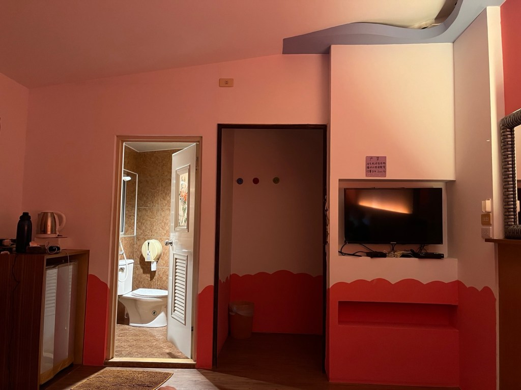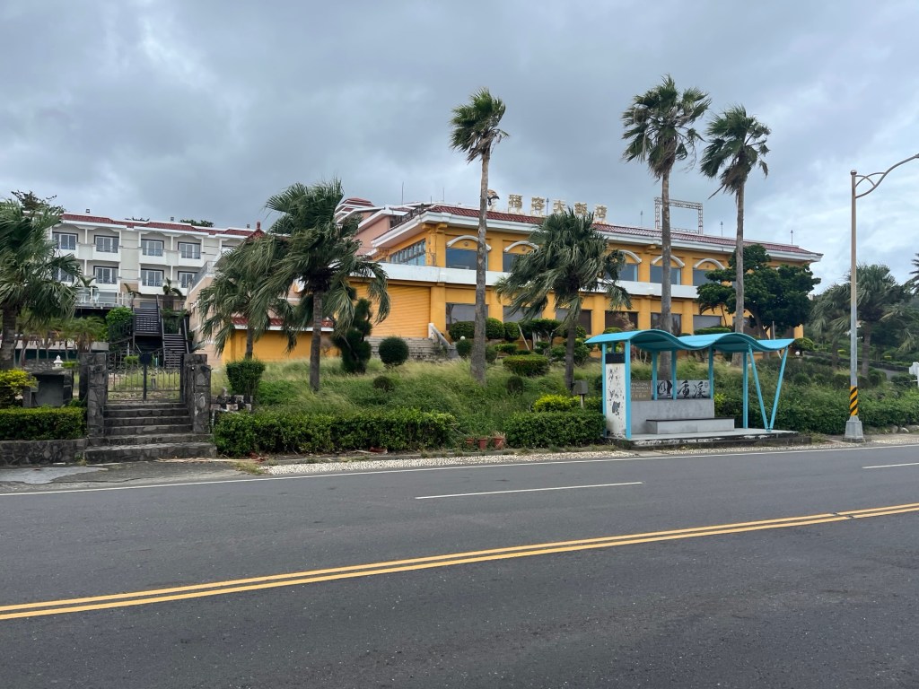 Der Wind und die Müdigkeit bringen uns dazu, umzukehren. Nach Balkon mit Meerblick sieht das Häuserensemble von außen nicht aus, aber wer weiß. Hauptsache ein Platz für die Sachen, ein Bett und die Nähe zum Meer. Tatsächlich befindet sich im Zimmergeflecht des Hauses eines im Obergeschoss mit 3qm-Dachterrasse, die auf ein bestehendes Blechdach gesetzt wurde. Und man kann sogar das Meer sehen, wow. Ansonsten entspricht das Ganze dem niedrigen Budget von 11€ pro Nacht. Auch die Freundlichkeit der Rezeption passt sich dem Budget an. Die Fensterläden sind anscheinend so locker, dass sie vom Wind durchweg klappern, als würde jemand konstant an die Tür klopfen oder einen Schrank öffnen. Ich will ja nicht von Geistern reden, aaaber… das wäre keine gute Idee für viele Taiwanesen, nichts für schwache Nerven.