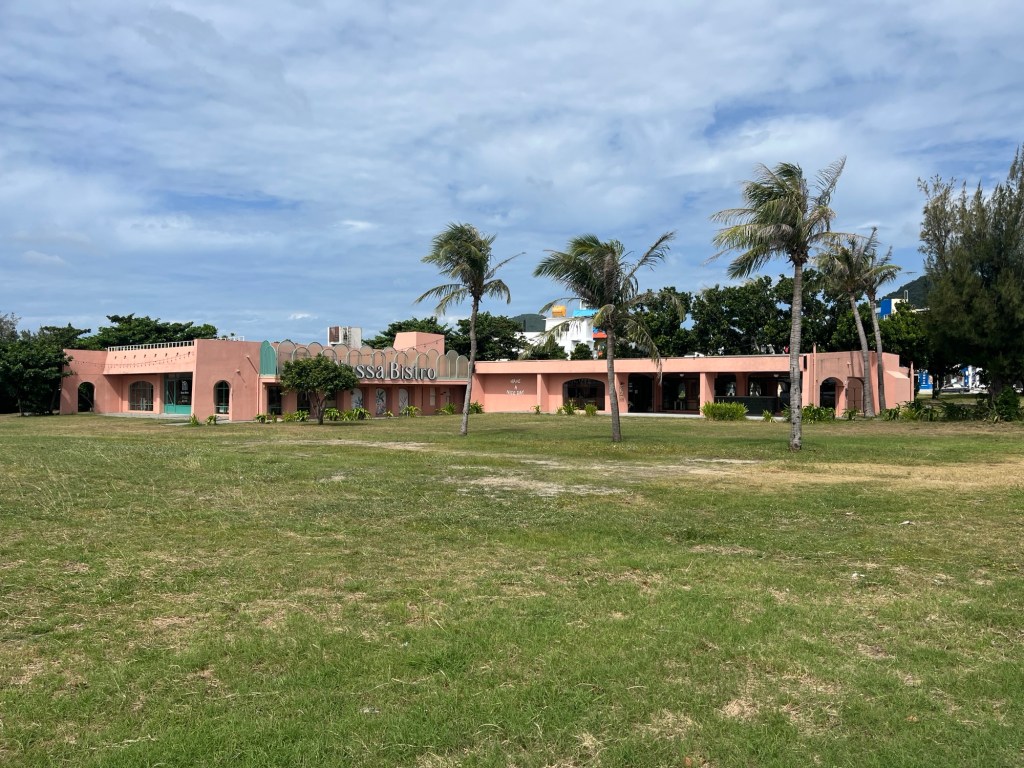 Die Unterkunft ist nah an der Busstation, allerdings müssen wir noch knapp drei Stunden auf den Check-In warten. Na gut, dann müssen wir uns leider an den leeren Strand vor der Haustür setzen. Mit einem zweiten Frühstück vom 7/11, zu dem ganz sicher kein deutscher Hausarzt raten würde. Aber der Ort ist wie ausgestorben, geöffnete Alternativen nicht in Sicht. Gute Sicht gibt es dafür auf die Natur, eine großes weißes Tor erzählt vom Nationalpark, der sich über den gesamten südlichen Inselzipfel erstreckt.