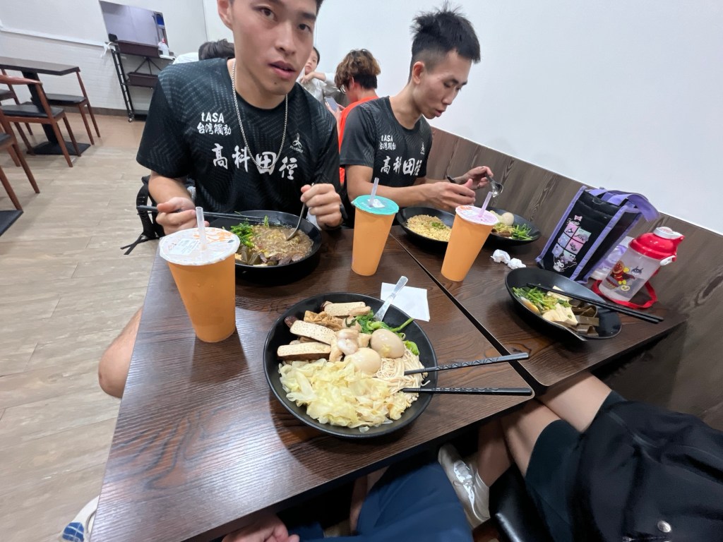 Für Getränke laufen wir kurz zu einem Teeladen rüber. Ray explodiert sein Drachenfruchttee (lóngguāchá) beim Runterfallen, und sozial wie die Taiwanesen sind, fragt er ordentlich nach Wischmopp und Wasser. Hätte in Deutschland bestimmt niemand gemacht, zumal die pinke Flüssigkeit auf dem Fußgängerweg in den Gulli rinnt. Ein Teil der Jungs raucht übrigens, das war mir noch gar nicht aufgefallen. Krass, nach einem so anstrengenden Sprinttraining…