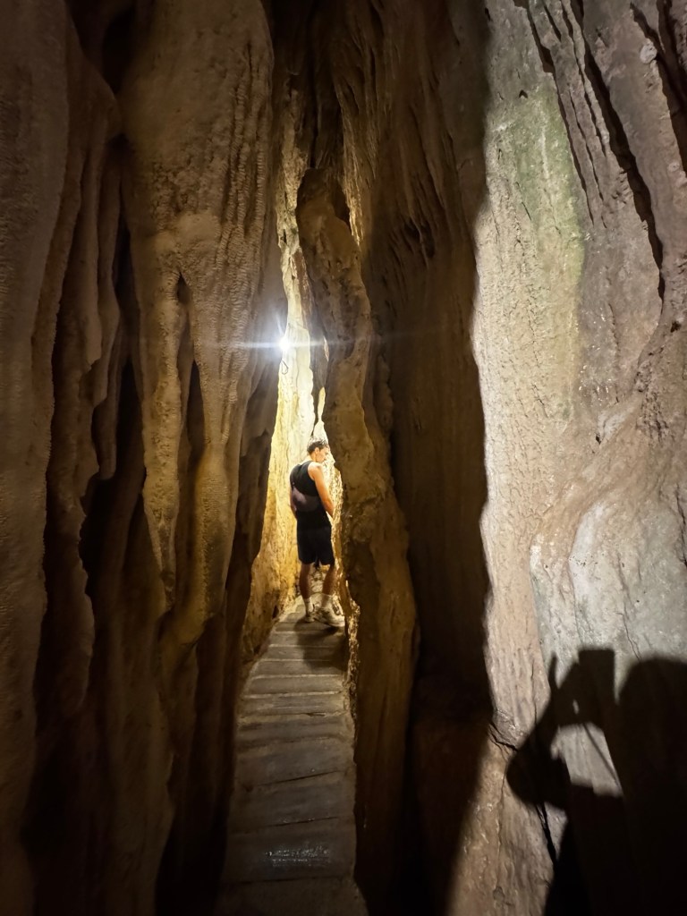 Spannender sind die übrigen Höhlen. Besonders die mit dem Beinamen „Drachenzahn“, durch den sowieso engen Gang ziehen sich spitz nach oben laufende Felsen, die gut und gerne riesige Zähne sein könnten. Faszinierend: in den Höhlen ist es so still, dass man nicht einmal den sonstigen rauschigen Unterton Umgebung hört.