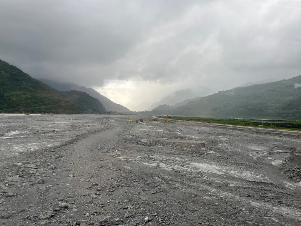 Die Kaohsiung Station ist zwar ziemlich groß und unübersichtlich, wenigstens aber gut ausgeschildert. Das Zugmodell, das uns nach Taitung bringen soll, könnte man mit einem besseren deutschen IC vergleichen. Kein ICE, aber auch keine bodenlose Local Train. Tze-Chiang Limited Express heißt die smoothe Kiste, die fast so viel Beinfreiheit lässt wie die HSR (High Speed Rail) und für die man eine Reservierung benötigt. Essen und Trinken ist erlaubt (es kommt sogar ab und zu jemand zum Mülleinsammeln vorbei), auch über Gespräche regt sich niemand auf. Für die knapp 3-Stunden-Fahrt zahlen wir an die 13€, das geht schwer in Ordnung. Nach einer großen Kurve in Richtung Südküste schwenkt die Strecke zuckelnd durch Tunnel in den Bergen und erreicht bald die Ostküste. Unsere Plätze sind die hintersten im ganzen Zug und nach links, also ins Land gerichtet. Besonders auffallen tun mir die vielen leeren Flussbetten, über deren Brücken wir so langsam fahren, dass genug Zeit zum Staunen bleibt. Unfassbar breite Kiesrinnen, ich bekomme sie teilweise nichtmal auf ein einziges Foto, brechen aus den ausufernden Tälern hervor und führen das unsichtbare Flusswasser ins Meer. In der Regenzeit muss es brachiale Fluten geben, so sieht es jedenfalls aus. In jedem dieser Flussbetten sind mehrere Baustellenfahrzeuge zu sehen, die Kies transportieren und, reine Vermutung, die Fläche weiter ausheben?