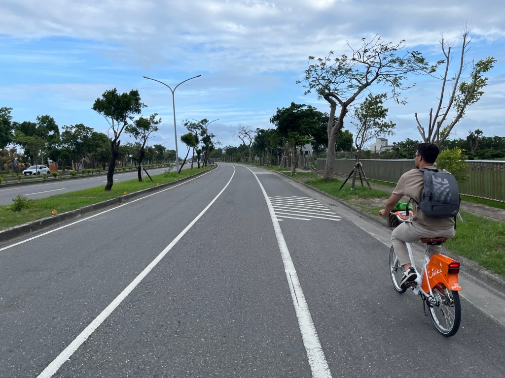 Nicht viel später erreichen wir den Taitunger Hauptbahnhof. Nicht nur ist es hier sehr bewölkt, auch die Klima ist ganz anders. Die deutlich geringere Luftfeuchtigkeit bei immer noch 27 Grad und leichtem Wind senkt sich von der drückenden Hitze in Kaohsiung stark ab. Dabei sind die Städte gerade einmal 75 Kilometer Luftlinie voneinander entfernt. Als Nächstes nehmen wir uns zwei YouBikes und mir fällt der nächste Unterschied auf: die Berge sind deutlich näher, selbst bei schlechter Sicht sind die nächsten Gipfel klar als Silhouette zu erkennen. Außerdem hat Taitung eine sehr geringe Stadtdichte, die Straße führt uns erstmal an vielen Reisfeldern und sonstigen Grünflächen vorbei. Erst ganz spät beginnen die Häuser, innenstädtische Straßen mit erhöhtem Verkehrsaufkommen zu formen. Die Größe dieses Bereichs beschränkt sich aber auf ein Gebiet, das vielleicht so groß ist wie eine typische europäische Altstadt. Kommt man dort heraus, warten weite Flächen und großzügige Blicke in die Natur. Die kühlere Atmosphäre, deckende Wolken und ein wenig Meeresluft wecken Kindheitserinnerungen an Den Haag. Bei Taitung habe ich sofort ein gutes Gefühl.