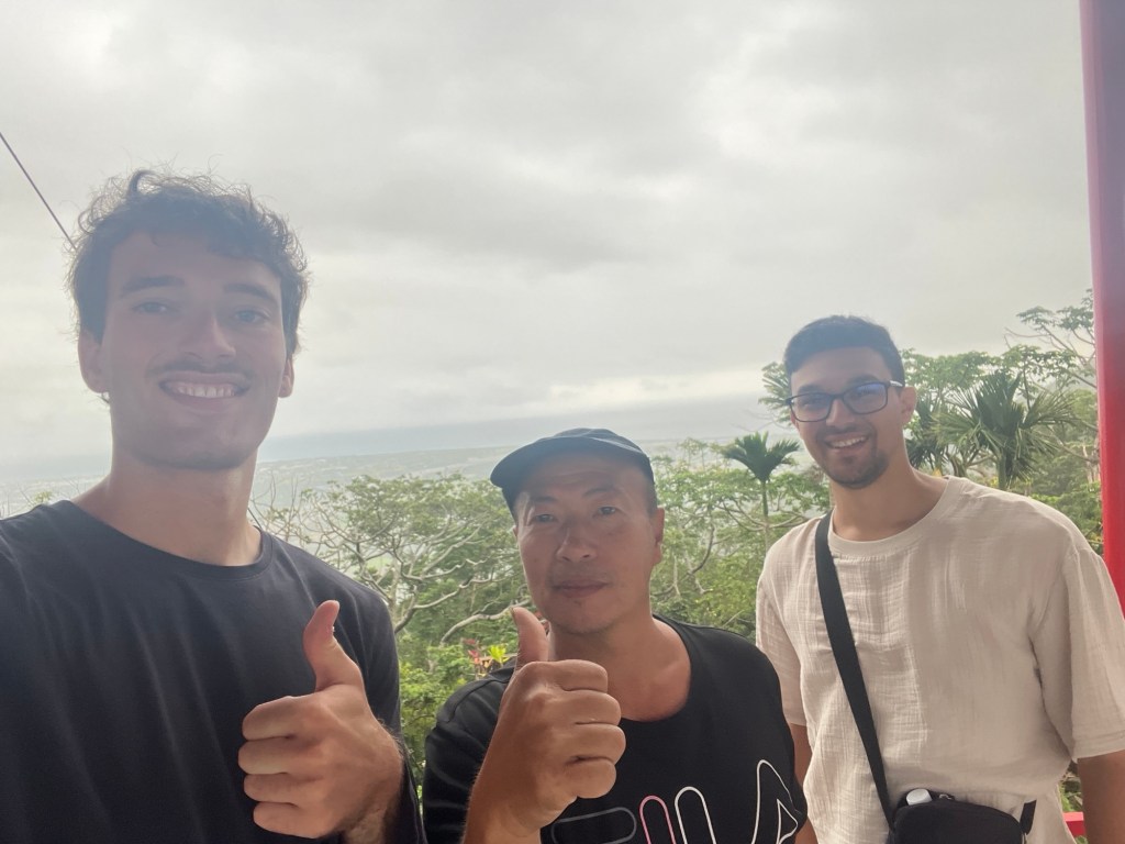 Dass er uns hier getroffen hat bzw. dass wir generell hier gelandet sind, spricht er mehrmals an und behauptet, es sei das Schicksal. Gerade an diesen Schrein, ja ist das denn zu glauben?? Er ist völlig aus dem Häuschen, muss auch gleich ein, zwei Freunde anrufen, um es ihnen zu erzählen. Tatsächlich dürfte der Ort für Fremde nicht gerade leicht zu finden sein und ich glaube auch nicht, dass bisher irgendjemand anderes, der nicht Taiwanese ist, den Schrein gesehen hat. Taitung County ist sowieso sehr ruhig, es gibt keine ausgeschilderten Wanderrouten, wir sind nur per Zufall auf dieser Straße gelandet und Hindernisse wie aggressive Hunde oder schreiende Affen gab es auch genug. Die Sache ist also klar: wir drei haben ab sofort eine ganz besondere Verbindung.