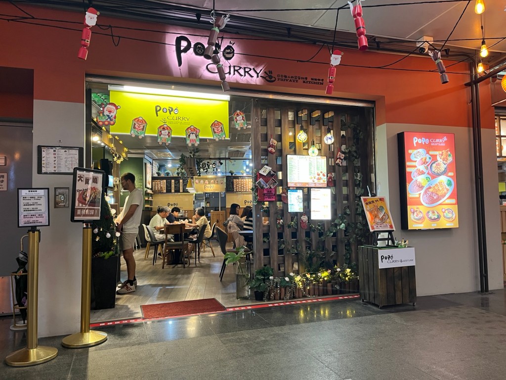 Zu Mittag speisen wir im U-Bahn-Gang der Formosa Boulevard Station. „Popo Curry“ liefert besseres Essen, als es der Name vermuten lässt. Fast schon aus Prinzip müssen wir uns nach draußen setzen, denn dass man sich im Schacht einer U-Bahn-Station so wohl fühlt, kommt nicht alle Tage vor. Aus irgendeinem Grund ist der Laden schon sehr weihnachtlich geschmückt, und auch kleine Fische in Vasen dürfen nicht fehlen…