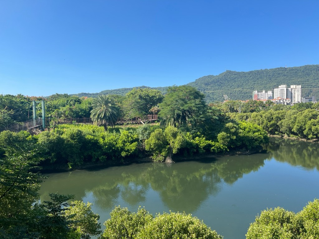 Erste Station ist ein Park im Südwesten, denn das Museum, das Aurora mir (wie erwartet) zeigen möchte, öffnet erst um 9:30 Uhr. Die „Zhongdu Wetlands“ beinhalten auf kleiner Fläche einen beschützten Blick in die Natur über einen Schlängelweg, der kleine Hängebrücken inmitten von Sumpfbäumen hat. Sie verliert ihren Schlüssel fast an den See, als sie ein Foto von mir auf der Hängebrücke macht. Ansonsten ist sie sehr darauf bedacht, bloß keine UV-Strahlung abzubekommen und wundert sich sehr, dass ich es ohne Schirm aushalte. Klar ist es warm, aber die Sonnenbrille schützt meine Augen und es ist ja auch nicht so, als ob die meisten Taiwanesen nicht genauso in der Hitze brutzeln, ohne dass es sie stört.