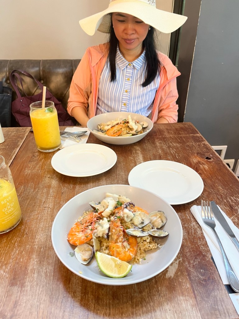 Am Nachmittag hat sie wieder Unterricht, will mich vorher aber unbedingt in ein Restaurant mitnehmen. Vor dem edel aussehenden Lokal soll ich schonmal aussteigen und mich nach Gerichten umsehen, während sie einen Parkplatz sucht. Wir bekommen dann einen Tisch zugewiesen und ich bestelle genau wie sie ein Seafood-Reisgericht. Mir ist bewusst, dass sie mich höchstwahrscheinlich einladen will, also versuche ich, auf niedrigem Preisniveau zu bleiben. Deshalb bestelle ich denselben Smoothie, den Aurora auch bestellt. Was für ein Zufall, glaubt sie. Tatsächlich sind die Speisen sehr erschwinglich: Was in Deutschland bei der Aufmachung garantiert 20€ für das billigste Gericht bedeutet hätte, kommt hier mit einem Durchschnittspreis von schlappen 300$TD (8,50€) aus. Aurora bestellt jeweils eine weitere Vorspeise, Kürbissuppe, Salat und Weißbrot. Ich weiß, dass die Familie nicht arm ist, trotzdem kommt es mir irgendwie überzogen vor. Vor allem, weil ich weder Byron noch sie besonders gut oder lange kenne.