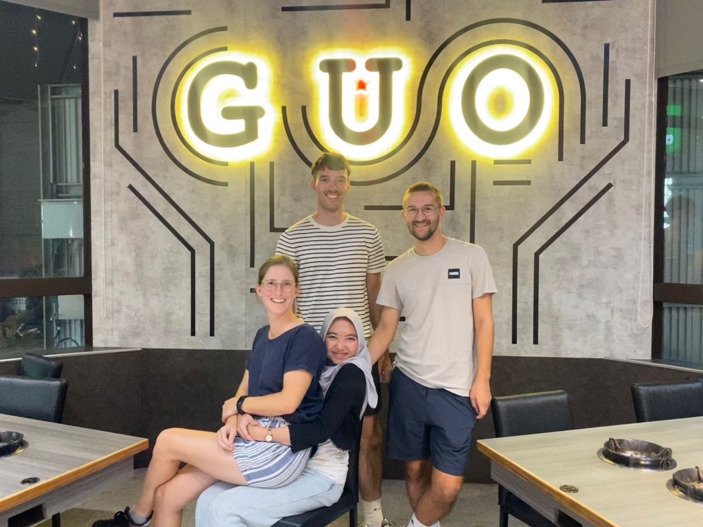 Der Eiskonsum unseres Tisches ist schon ein bisschen bodenlos, das kann man getrost so sagen. Alle ein bis zwei Minuten rennt jemand an die Tiefkühltruhe, ist ja gratis. Warum nicht einfach jede Sorte ausprobieren, wenn man die Möglichkeit dazu hat. Die Deutschen halt. Dass es billige Ware ist, schmeckt man zwar, aber die Geschmacksnote „Kostenlos“ wiegt schwerer. Minda fällt ein chinesisches Meme ein, das sie extrem lustig findet und uns zeigt. 冰淇淋 „bīngqílín“ bedeutet Eiscreme und ist eine Vokabel, die wir erst neulich gelernt haben. Deshalb und weil Minda uns zwingt, zercringen wir das sich zunehmend leerende Lokal, stellen das Video in bester Gen Z-Manier nach. Das Original zuerst: