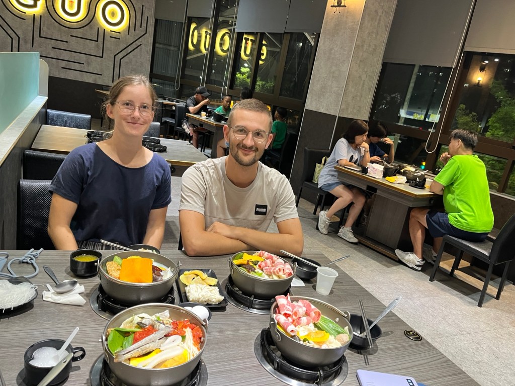 Der Freitagskurs hat definitiv mehr drauf als der von Dienstag, hier hat sich (vermutlich aufgrund der Freiwilligkeit) ein lernwilliger Kern herauskristallisiert. Sogar Sascha ist da, er hat aber offensichtlich nicht so viel gelernt wie die motivierten Inder weiter hinten und struggelt ab und zu, wenn er rangenommen wird. Fairerweise muss man sagen, als Lehrer, als 老師 lǎoshī hat er vermutlich mehr zu tun als wir. Morgen geht’s mit einer Klasse sogar nach Taipei, nachdem er letztens schonmal da war. Der DAAD scheint es gut mit ihm zu meinen, es sei ihm gegönnt. Er erzählt, dass die Schüler allesamt nach Versicherungen gefragt hätten und obwohl er es geklärt bekommen hat, ist er verwundert. So was hätte man doch eher von Deutschen erwartet? Oder einfach von niemandem?