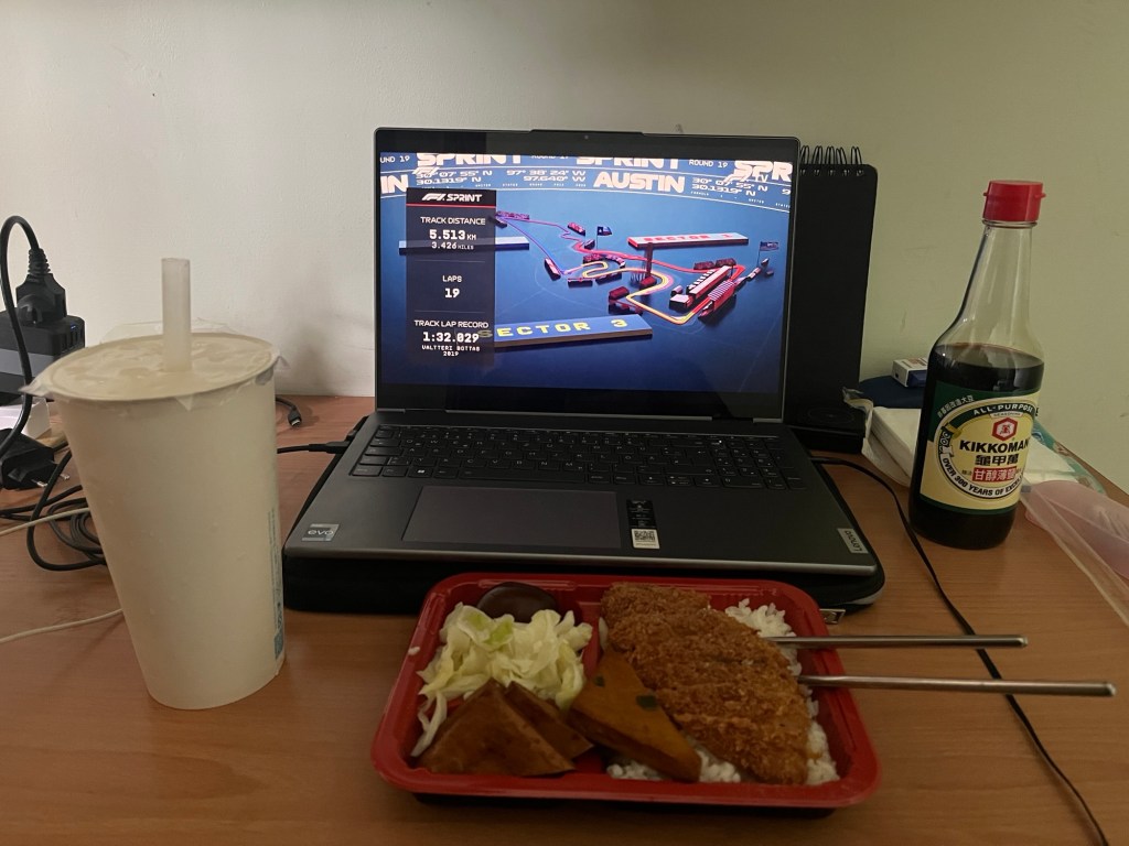 Gefährlich fühlt sich hier gar nichts an, draußen weht ein feines Lüftchen, mehr nicht. Die Ruhe vor dem Sturm? Ich glaube fast nicht, mein Gefühl sagt mir, dass am Ende mal wieder ganz viel Aufregung um nichts sein wird. Im Dorm lebt jeder für sich hin, die Taiwanesen sind sowieso abgeschottet von den Internationals, und auch die lernen entweder für ihre Kurse oder glotzen in die Quadratkiste. Die Zeit vertreibe ich mir vormittags mit dem weiteren Aufholen von Formel 1-Rennen und halbmotiviertem Vokabellernen. Mein Rücken tut weh, das viele Liegen und Sitzen tut mir nicht gut, vor allem auf der gut 4cm dicken Matratze, durch die ich mit meiner Wirbelsäule die holzige Platte darunter spüre. ChatGPT gibt mir wieder ein paar Übungen, aber natürlich bessert sich so etwas nicht innerhalb von 20 Minuten.