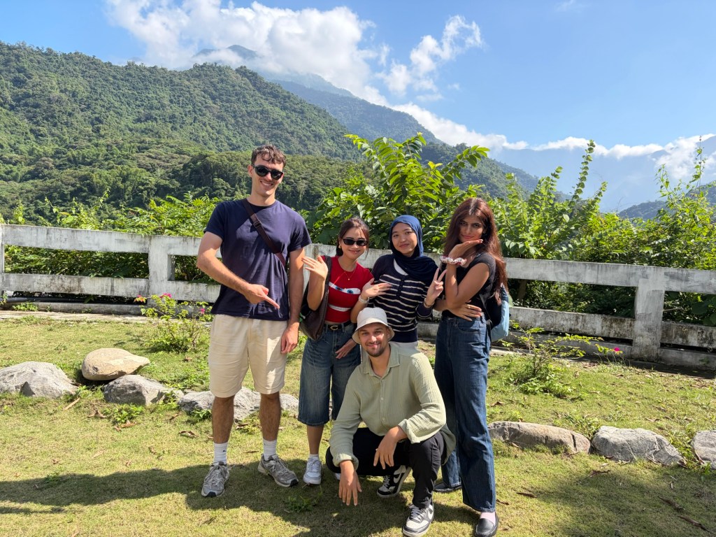 Gemächlich bewegt sich die Gruppe fort, es bleibt viel Zeit zum Schnacken. Ich erfahre, dass Vanessa entgegen meines bisherigen Denkens gar keine Vietnamesin, sondern Phillipinin ist. Genau wie James, mein erster Roommate, kommt sie von den südlichen Inseln. Bei genauerer Betrachtung hätte ich vielleicht sogar einen ethnischen Unterschied zu den doch sehr markanten Gesichtszügen von Vietnamesen wie Mike erkennen können. Zwischen Phillipinen und Indonesiern sei der wiederum kaum vorhanden, sagen Minda und Vanessa, die beide angeblich nur 1,50m groß sind. An einem Viewpoint sehen wir eine „rainbow bridge“, die den Indigenen viel bedeutet. Eine Kulisse sehr ähnlich dem Ort, an dem ich mit Sky vor einigen Wochen in den Bergen war.