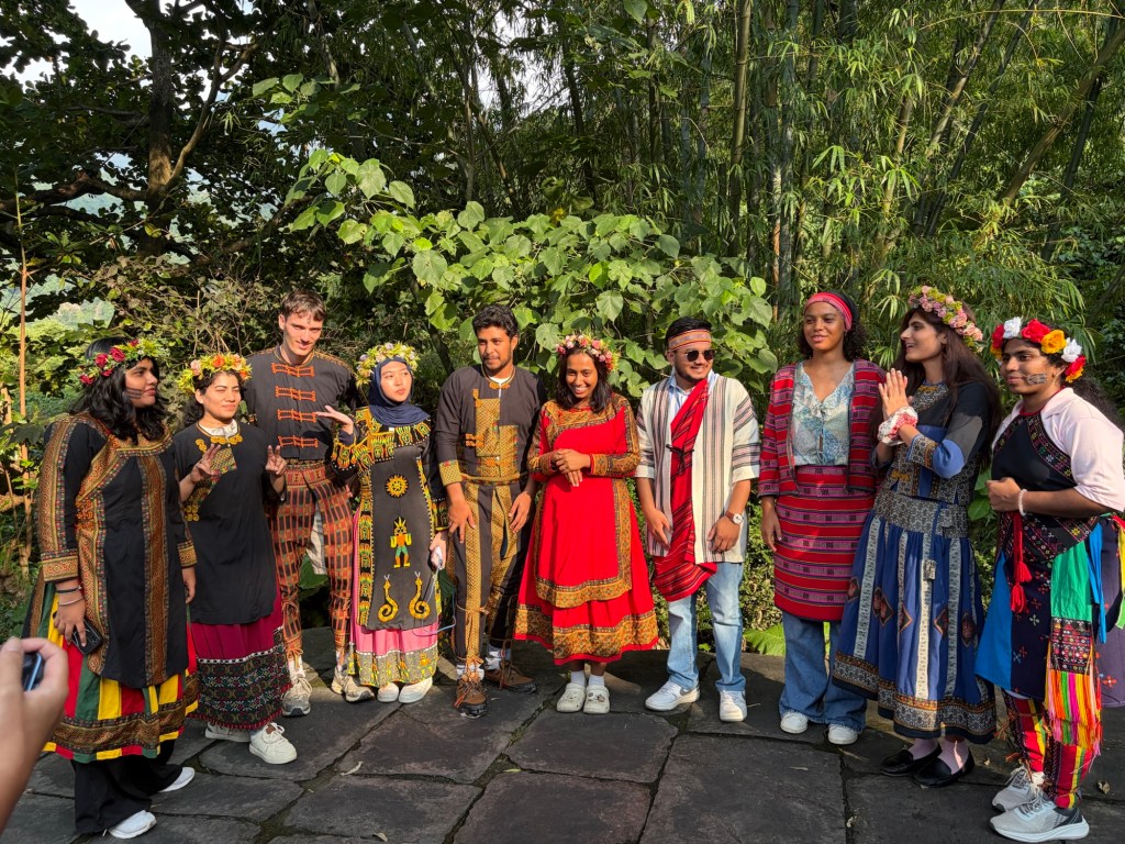 Die folgende Darstellung behandelt die Geschichte des indigenen Volkes dieser Region, vermutlich geht es um Respekt ihnen gegenüber. Minda und andere winken Ihsan und mich in die erste Reihe, ich setze mich neben Vanessa. Die Aufführung ist klischeehaft das, was man sich intuitiv unter Eingeborenentänzen und -musik ganz allgemein vorstellen mag. Bambustrommeln, kriegerische Laute, Pantomime von Konflikten und Lebenssituationen, Rhythmik pur. Große Bildschirme links und rechts der Bühne erklären, was genau man sieht. Die Mädels fangen an zu filmen, sieht ja eh niemand. Nur Vanessa, die ihr Blitzlicht anhat (wir sitzen in der ersten Reihe!), erregt entsprechend Aufmerksamkeit, das wird sie nicht so schnell vergessen. Die Inigenen erzählen mithilfe der Musik ihre Lebensgeschichte. Frauen lernten zu weben, Männer erprobten den Kampf. Wer seinen jeweiligen Skill gemeistert hatte, war offiziell erwachsen und bekam ein offenbar schmerzhaftes Gesichtstattoo, für das man Schläge ins Gesicht ertragen musste. Wer starb und Teil der Glaubensgemeinschaft war, ging über die „Regenbogenbrücke“ in das Reich nach dem Tod. Gegnerische Stämme bekämpften sich gerne mal, die Darstellung dessen ist ein ziemlich aufwändiger Tanz, mit vielen Sprüngen. Der Impuls, sich darüber lustig zu machen, liegt nahe, aber im Endeffekt sind das halt hunderte, wenn nicht tausend Jahre alte Traditionen. Muskan schickt mir später ihre Videos.