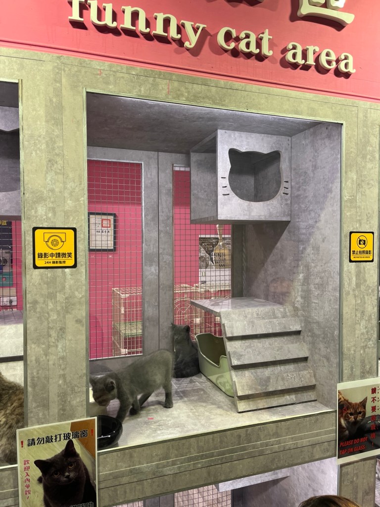 Als Verdauungsspaziergang schlendern wir durch die Marktstraßen, man kann sich ja mal anschauen, was das einfache Volk so treibt. Interessant sind immer wieder die personalfreien Läden mit den gelben Greifautomaten, die einem vorspielen, man könne etwas gewinnen. Um das erneut zu beweisen, müssen wir natürlich jeweils eine Runde spielen. Ich greife das Plüschtier perfekt, der Haken zieht es auch optimal in die Höhe, aber genau dann öffnet sich die Klaue, lässt den Gegenstand fallen und fährt über die Gewinnluke. Als wäre es mein Fehler gewesen. Bodenloser Scam ist das, schamloser Betrug. Des Weiteren entdecke ich mal wieder bloßgestellte Katzen, die hinter Glasscheiben feilgeboten werden. Besser als im Käfig, aber glücklich sehen sie trotzdem nicht aus.