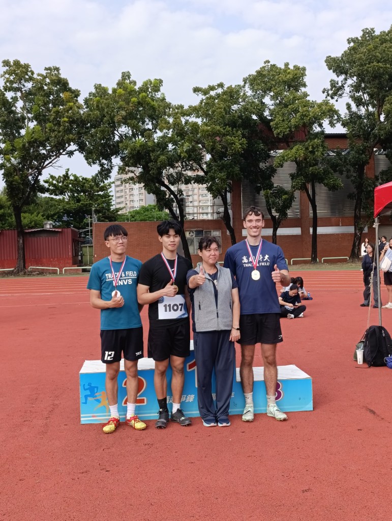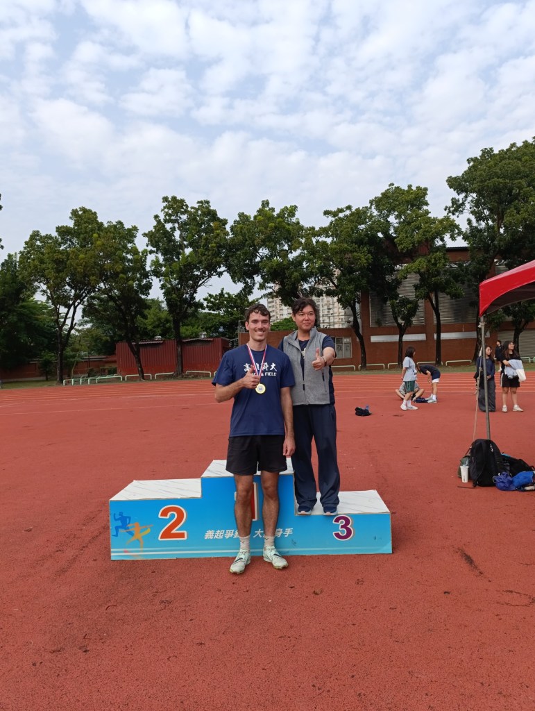 Ein drahtiger Typ mit schneller Sonnenbrille und Cowboyhut identifiziert mich schnell als den Outsider, spricht mich an. Er sei „Son“, zumindest ist das sein Familienname, er kommt aus Miaoli im Norden (ich erinnere mich: die Stadt ist chronisch verschuldet) und heißt mich freundlich willkommen. Er sagt auch zu anderen Athleten: „This is Leo“, die aber drehen sich weg und gehen anderer Wege. Im Folgenden erklärt er mir immer alles auf Englisch, anscheinend ist er der Leiter des anderen Uniteams, oder so ähnlich. Nebenan findet noch Weitsprung statt, mehr Disziplinen gibt es nicht.
