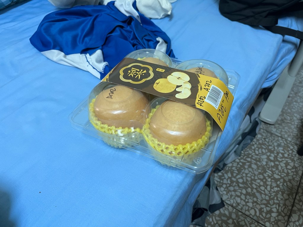 Im Dormzimmer gammeln die anderen mal wieder rum; auch wenn ich es täglich sehe, komme ich darauf immer noch nicht klar. Sky zieht wenigstens los, um sich endlich Medizin zu holen, denn er fühlt sich wieder schlechter. Außerdem: Früchte. Er erzählt das aber so, als dass man Vitamine nur dann bräuchte, wenn man krank ist. Die vier Birnen, die er sich geholt hat, sind wirklich gottlos eingepackt, selbst für hiesige Verhältnisse. „I prefer pear over apple, because it has more water and more sweet.“ Natürlich, haha.