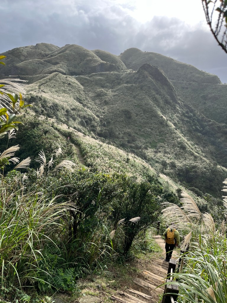 Von da an wird es leerer, auf die Straße haben viele wohl keine Lust und kehren um oder steigen in den gemütlichen Vierbeiner. An der Straßenrand zu urinieren, traue ich mich nicht, auch wenn ich weiß, dass es ganz natürlich ist. Taiwan ist in der Hinsicht anders. Immerhin geht zum Ende hin wieder ein Wanderweg ab, der mehrheitlich aus offenliegenden Treppen besteht, die wir schon am Mittag gesehen haben. Beim Blick auf die hinter uns liegenden Berge wird mir endlich klar, warum der erste Gipfel seinen Namen trägt: aus diesem Blickwinkel ist es wirklich eine Teekanne!