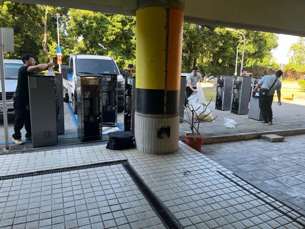 Erstaunlich fit wache ich um Punkt zehn auf und hole mir wie eintrainiert Frühstück. Dabei sehe ich, wie endlich, nach langer, langer Zeit, neue Wasserspender den Campus erreichen. Fünf Männer entladen und entpacken die schwere Ware. Es bleibt zu hoffen, dass das Ausländerstockwerk einen funktionstüchtigen bekommt, schließlich sind wir zu hohem Grade abhängig davon, wenn wir nicht jedes Mal kleine Plastikflaschen aus convenience stores besorgen wollen. Ich frage mich außerdem, warum es gleich so viele sein müssen, denn meines Wissens nach funktionieren diejenigen auf den anderen Stockwerken einwandfrei. Genau deshalb laufe ich für mein kaltes Wasser ja manchmal hoch. Eventuell gab es Massenrabatt oder so.