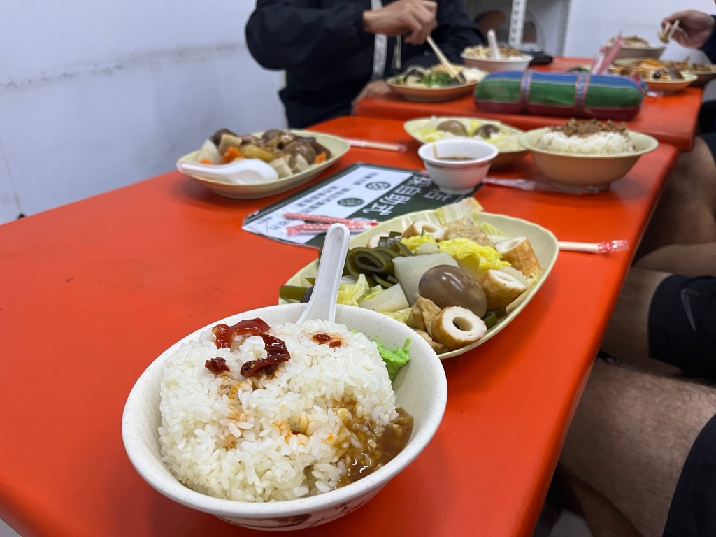Zum dinner düse ich mit fünf anderen Jungs eine Weile. Statt dem „La Ca Sa“ suchen wir einen gegenüberliegenden Laden auf, der nach Industrieimbiss mit ganz räudigem Look schreit. In den wären nicht nur andere Leute, die ich kenne, sondern sicher auch ich selbst nicht freiwillig gegangen. Jegliche Deko fehlt und Flecken an den hässlich weißen Fliesen werben auch nicht gerade um Kundschaft. Allerdings vertraue ich meinen Kameraden. Jeder bekommt Topf und Zange, woraufhin man sich die Zutaten aus riesigen Metallbehältern auftut, die einem zusagen. Neben grobem Gemüse wie ganzen Salatköpfen, Maiskolben und Kohl gibt es mehrheitlich Fleisch, Fisch, Tofu und Ei. Der Kassierer ist gleichzeitig der Schnetzler, beim Rausnehmen und Zerschneiden der Zutaten rechnet er den Preis des Gerichts aus. Seine Geschwindigkeit ist nicht von dieser Welt, kaum ein Roboter wäre schneller. So werden die Kunden durchgerusht und er hat schneller wieder Pause. Das Wechselgeld für meinen Tausender darf ich mir selber aus den halbwegs gefüllten Geldplastikboxen nehmen. Wieviel genau, scheint keinen zu interessieren, Vertrauen wird hier großgeschrieben. 140$TD (4€) für einiges an Fisch, drei Eier, viel Gemüse und etwas Tofu plus gratis Reis scheint mir ein guter Preis. Von den vielen Soßen ist diejenige ohne Fleisch (vermutlich Knoblauch) extrem lecker, ich könnte damit den ganzen Reis übergießen. Ray und andere haben sich im Hungerblick komplett überschätzt und lassen wahnsinnig viel übrig, das habe ich bei ihnen noch nie so gesehen. Aber die vielen Stunden Training haben echt Löcher in die Mägen gefressen, für mich selbst reicht es gerade so zum Sattwerden. Den Laden speicher ich mir ab.