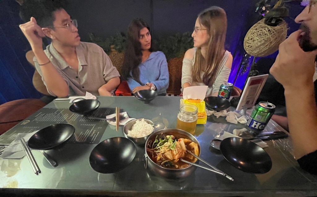 Die races fangen aber nur zu schön lesbaren Uhrzeiten an, weshalb erstmal an den Tischen gegammelt wird. Ich sitze bei Kaan, Ihsan und Bobby. Letzterer spricht für taiwanesische Verhältnisse sehr gutes Englisch und macht einen vorbildlichen Eindruck. Er ist gut angezogen, schwarz-weiß minimalistisch karierter Mantel, Guter-Enkel-Frisur und eine zum Gesicht passende Brille. Jedem wird zugehört, alle werden berücksichtigt. Nur ein schlechter Zahn stört das Gesamtbild. Er hat wohl vor, ins Ausland an die Innsbrucker Uni zu gehen, an der Kaan, Fabian und Phillip studieren. Allerdings wird das nicht so einfach, fühlt Kaan sich verpflichtet, ihn darauf hinzuweisen. Einer der Kurse, die Bobby belegen will, habe eine extrem hohe Durchfallquote, selbst mit Zweitversuch bestehen ihn nur die wenigsten. Generell sei das deutschsprachige Bildungssystem nicht so easypeasy wie das hiesige, da stimmt auch Ihsan zu. „In Germany, you have to learn, you can not just chill.“ Sie belehren ihn auch mit konkreten Tipps: „Your presentation has to look professional“, AI könne man nur bedingt nutzen. Ihsan sagt lachend: „The professor would throw me out of the window if I would chill like I am doing here.“ Ein bisschen schäme ich mich, weil es so von oben herab klingt, aber im Grunde haben die beiden ziemlich Recht und Bobby scheint es zum Glück auch nicht böse zu verstehen. Vielmehr wundert er sich, warum er die Aufgaben denn nicht mit KI erledigen könne. Klingt, als wäre es von vornherein sein Plan gewesen. Das verstehe, wer will.