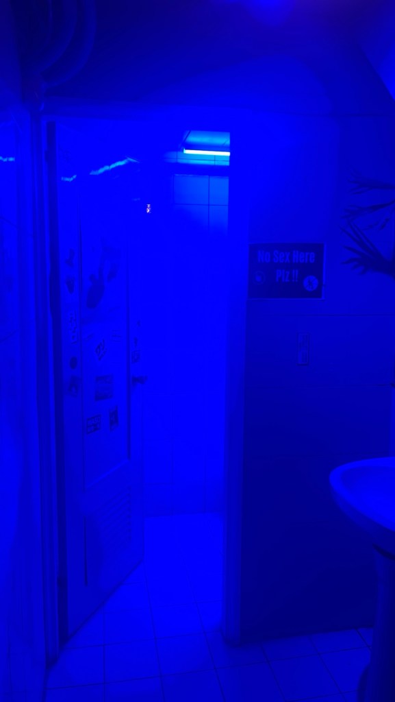 Der Dancefloor ist zwar klein, aber dafür eben eine freie Fläche ohne Schnickschnack. Die Bar liegt hinten im Raum gegenüber vom DJ und eine Garderobe braucht es nicht, wir sind ja in Taiwan. Julia legt ihre Jacke einfach auf einen Tisch im Flur und Thomas stellt seinen Beutel auf der Tanzfläche an den Rand, also tue ich es ihm nach. Insgesamt sind vielleicht 25-30 Leute vor Ort, am Tanzen sind aber immer nur so an die 10-15. Tatsächlich wäre es mit allen Gästen auf einmal auch sehr voll, aber es geht klar. Mit der Musik komme ich prinzipiell klar, nur zwei Sachen verwirren mich. Einerseits dauern die Tracks nicht so lange, bzw. switcht der DJ viel zu schnell, und zweitens bestehen die Übergänge aus viel zu langen und speziellen Samples, die entweder bekannte Melodien aus den Mario-Spielen oder scheinbar bekannte Memes sind. So oder so kommt man aus dem Rhythmus und muss aufhören zu tanzen. Besser als im „COCCO&CO.“, wo ich damals mit Tiger war, ist es aber ohne Frage. Auch die Leute, die tanzen, sind viel mehr bei der Sache, da fühle ich mich direkt wohl. Ein Typ fragt mich, ob ich das erste Mal hier bin und reckt freudig den Daumen nach oben, ganz nach dem Motto: „Willkommen!“ Der Männeranteil ist vermutlich trotzdem bei 70-80%, Techno ist hier aber auch etwas total Nischiges. Das Einzige, was mich richtig stört, sind zwei Junge, die die ganze Zeit mit einer großen Kamera über die Tanzfläche laufen und ohne Pause filmen. Vermutlich machen sie es für den Internetauftritt des Clubs oder ein anderes Projekt, aber schamlos halten sie das Objektiv auf diejenigen, die gerade in der Musik aufgehen und nichts mitbekommen. Auch Julia und Xandro sind verwirrt, beim bisher einzigen anderen Mal, das sie hier waren, gab es das nicht. Weil es mich irgendwann nervt, stelle ich mich tanzend direkt vor die Kamera und später drehe ich den Spieß um, filme den Typen selbst. Anders als in prestigeträchtigen Berliner Clubs hat man hier von Kameraverboten noch nicht gehört, im Gegenteil. Jede Promo ist willkommen, kein Stress diesbezüglich. Taschenkontrollen gibt es übrigens auch keine, Julia trinkt zwischendurch entspannt ihr Wasser.