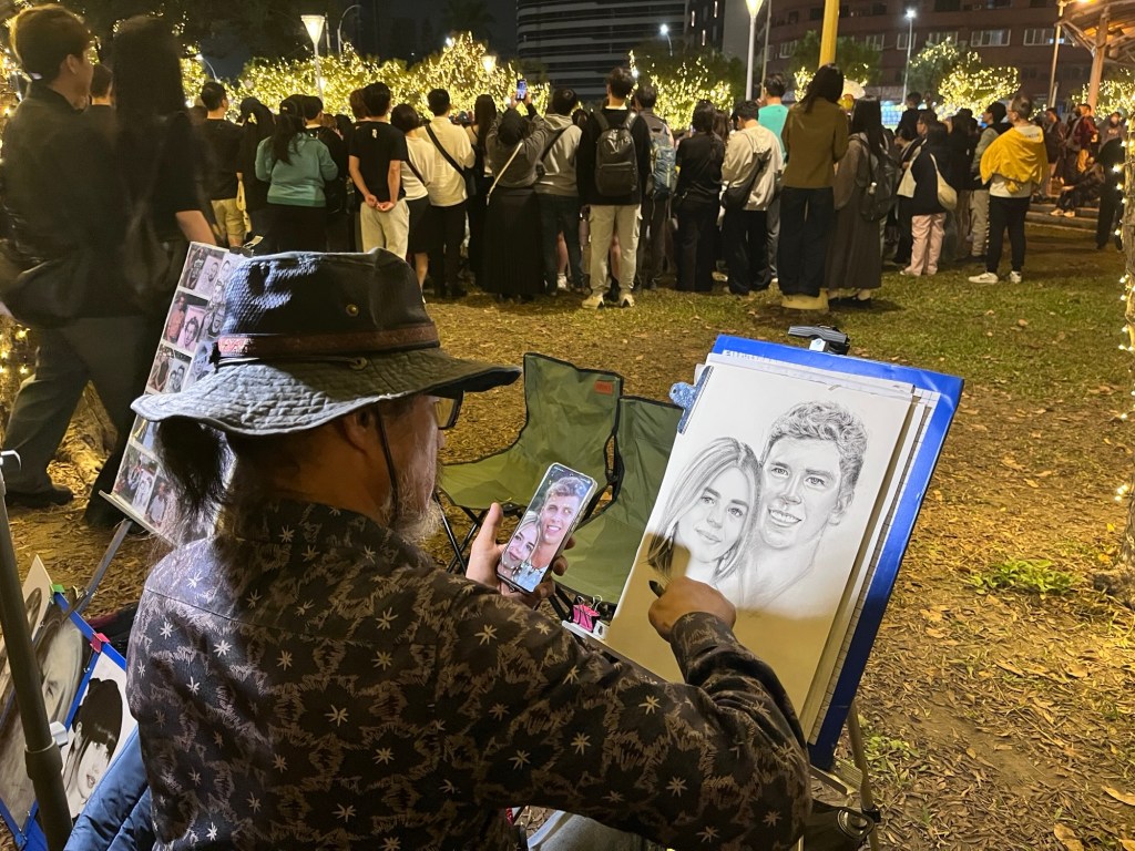 An vielen Ecken stehen Sicherheitsleute und über der großen Kreuzung nebenan fliegt eine geostationäre Drohne. Beides geht vermutlich auf den gestrigen Anschlag in Taipei zurück, denn angeblich wurde im ganzen Land eine erhöhte Sicherheitsstufe ausgerufen und ich erinnere mich nicht, diese Maßnahmen letzte Woche bemerkt zu haben. Dass es sich um einen Verrückten gehandelt hat, der sich nach der Tat selbst getötet hat, scheint dabei nebensächlich. Fabians zusätzliches Weihnachtsgeschenk für seine Freundin ist mittlerweile fertig, der Zeichner hat das vorgegebene Bild wirklich gut getroffen.