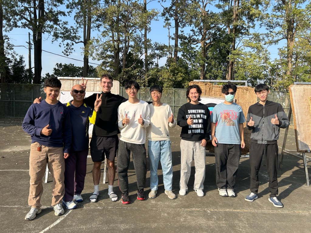 Alle haben großen Spaß und genießen das Schießen mit den Pfeilen, die ab und zu sogar mit Jagd-Logos bedruckt sind, wie mir auffällt. Ein mir bisher nicht aufgefallenes, stilles Mädchen fragt mich dann ganz unvermittelt: „Hatten Sie Spaß?“ Etwas verdutzt bringe ich in Erfahrung, dass sie Deutsch im dritten Jahr studiert, ihre Aussprache ist wirklich gut. Schade, dass sie erst jetzt ein Wort rausbringt, wo ich doch ab morgen komplett wegbin. Mir ist bewusst, dass die Taiwanesen sehr schüchtern sein können, allerdings wirkt mein Gegenüber sehr sicher und vor allem relaxt. Als es dann vorbei ist, gehen die meisten sofort, wie immer, aber meine Jungs bleiben diesmal kurz stehen. Ich lasse mir erneut ein paar Tipps für die Radtour geben, u.a. ist die riesige Brücke bei Taoyuan, die trotzdem sehenswert sein soll, noch bis März nicht eröffnet, sodass ich dort einen großen Bogen landeinwärts werde fahren müssen. Der Kollege, der in Kanada war, wird drei Tage nach mir in Taoyuan sein, verpasste Gelegenheit. „We will miss you“, sagen er und Justin, der ruhige Riese. „I will miss you too“, kann ich nur zurückgeben. Wenn ich mal wieder zurückkehre, melde ich mich klar. Und vor allem: Wenn sie mal nach Deutschland kommen sollten, „Text me! I can show you some places. But don’t come in winter! You won‘t like the temperatures.“ Sie lachen, wir geben uns alle Fistbump und dann steigen sie auf ihre Motorräder, ab gehts, weg geht‘s. Das ist doch mal ein gebührender Abschied, damit kann ich gut leben. Justin läuft noch mit mir rüber, er hat zwar keine Klausuren, aber ein Projekt, an dem er in der Bibliothek arbeiten muss. „See you“, rufen wir uns zu, auch wenn es eher eine Floskel ist. Was soll man auch sonst sagen?