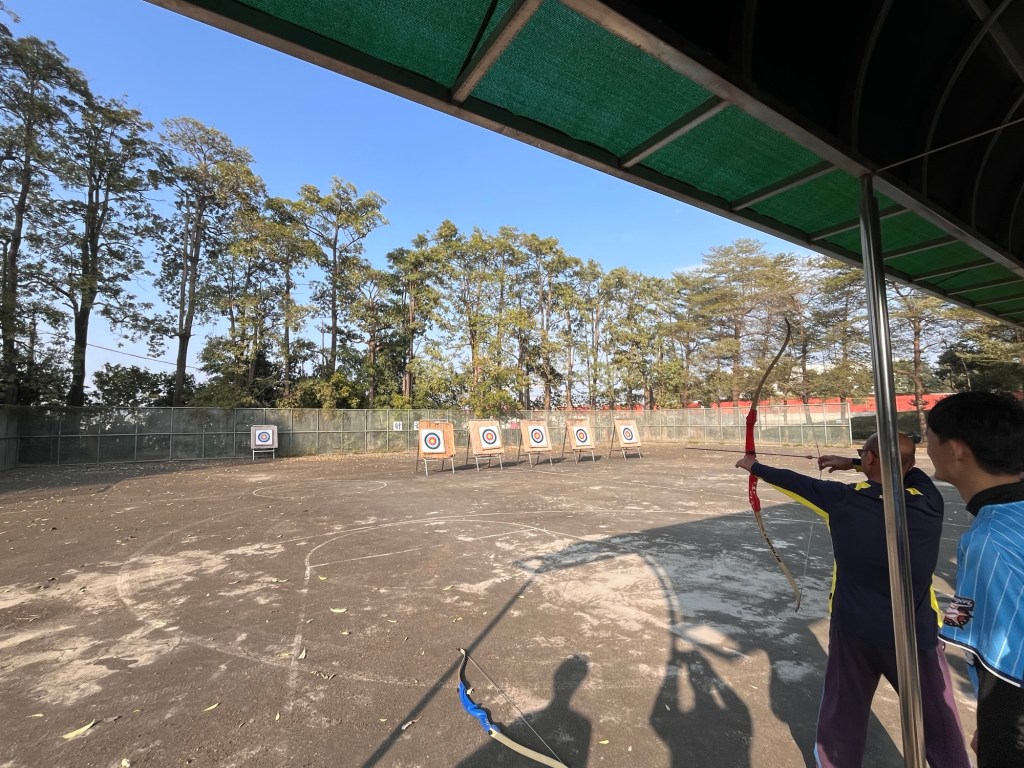 Zuerst üben die Gruppen wieder normal, allerdings dauert es nicht lange, bis der Lehrer kichernd vorbeischaut und etwas sagt, das darauf schließen lässt, dass wir es bald mit ihm zu tun bekommen. „Why teacher always wants to compete us?“ wundern sich auch die anderen. Vielleicht, weil ich der einzige Ausländer bin? Nein, Moment, das will ich ihm überhaupt nicht unterstellen. Die Stunde wäre auch bedeutend langweiliger, wenn er das nicht dauernd tun würde. So dürfen wir ein letztes Mal auf die 14 oder 15 Meter entfernte Zeilscheibe peilen und bei jedem Treffer schlechter als sieben Punkte auslachen lassen. Glücklicherweise performe ich aber ganz okay und auch im anschließenden Teamwettbewerb rette die ich Gruppe durch zwei Spiele durch, sodass wir am Ende ganz links landen. Ich darf immer die vollen zwei Pfeile schießen, werde der „MVP“ der Gruppe genannt.