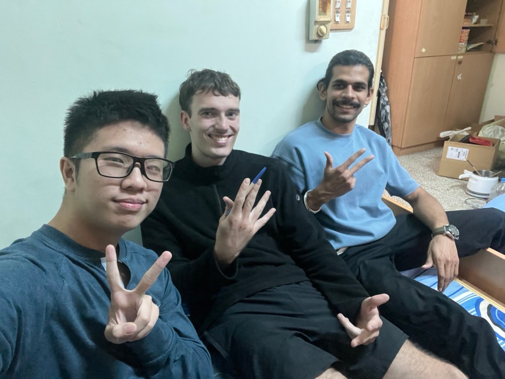 Einen traditionellen 7/11-Einkauf später setze ich mich in den Unterrichtsraum, wo meine Matratze noch erstaunter beäugt wird als im Straßenverkehr. Einen Tisch für das Schlafpolster, einen für den Rucksack, einen für mich. Abgesehen von Sebastian sind alle Schüler da, die meisten lächeln, als ich sie anschaue. Der Vietnamese mit Brille und halbwegs gutem Chinesisch erkundigt sich nach meinen Urlaubsplänen und freut sich für mich mit. „It is so brave to travel alone. It must be a lot of effort.“ Er selbst hat in den freien Monaten ein Projekt zu bewältigen, ich wünsche ihm viel Erfolg und wir tauschen Instagram aus. Gut vorbereitet fühlt er sich nicht, weil er kaum gelernt hat, ihm traue ich ein gutes Ergebnis aber trotzdem zu. Nicht so den üblichen Verdächtigen: Pryanshu, Akshey, Vivek und Mohan grinsen sich schon gegenseitig an, wer wohl das schlechteste Ergebnis einfährt, wobei Vivek noch am ehesten den Eindruck macht, als würde er sich konzentriert Vokabeln einprägen, drei Minuten vor Beginn.