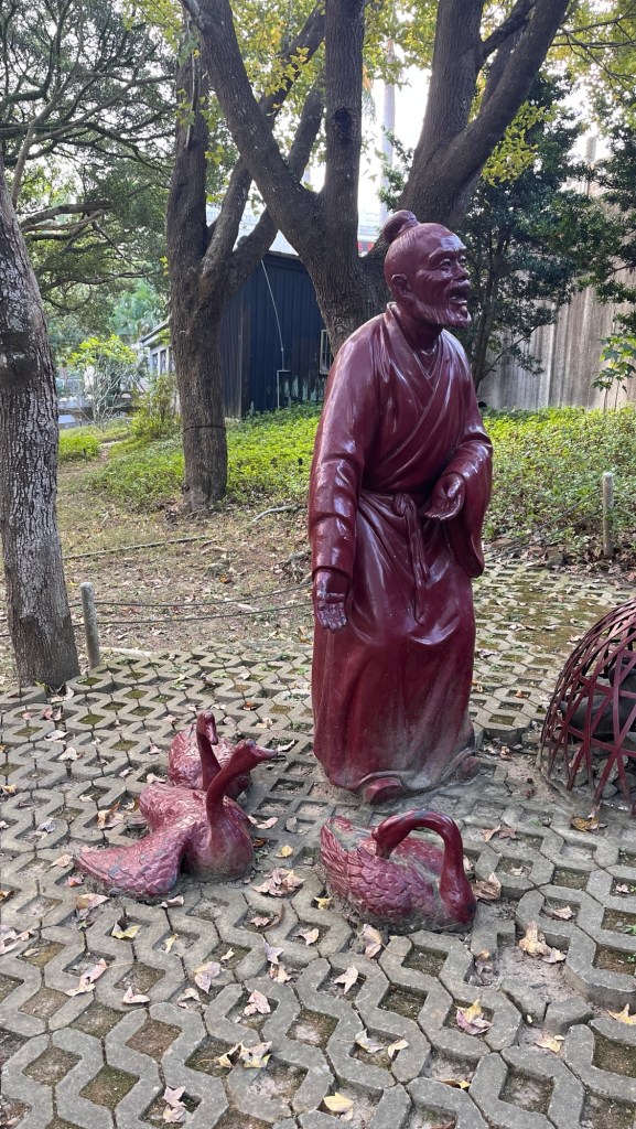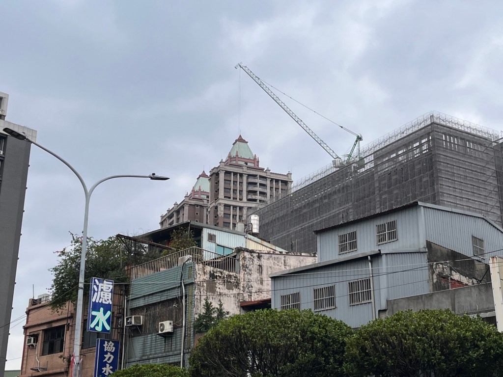 Dann folgt ein Spaziergang im Park, was sich aufgrund der erwähnten Umgebung, des Wetters, der wenigen Besucher und nicht zuletzt wegen meiner Planlosigkeit trostlos anfühlt. Ich setze mich kurz auf eine Bank und sehe ein Flugzeug, das in der Nähe landen wird, außerdem einen Grünabschnitt, der aktuell umgegraben wird. Da ich in Neu-Taipei bin, google ich mal schnell, was es so zu sehen gibt, aber fast alle Vorschläge implizieren Tagestouren in 60 Kilometer Entfernung, nach Jiufen bspw., wo ich mit Sidd war. Letztlich bleibt mir Maps, einer der unzähligen Tempel in der Nähe. Am riesigen Park-Schriftzug vorbei, über eine Ampel an der Schnellstraße, hier warten in die Höhe ragende Investorenbauten auf mich. Eines höher als das andere, ein anderes kälter als das eine. Kaum Menschen zu sehen, sogar der Verkehr ist ruhig. Auch der Tempel wirkt deplatziert, immerhin gibt es einen Vorplatz mit merkwürdig rot bedeckten Flächen, eine Art Bühne?