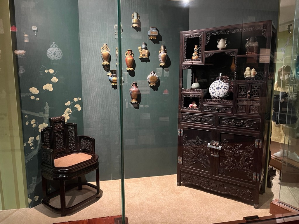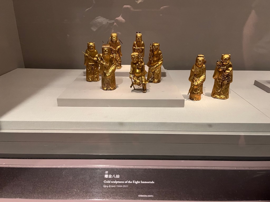 In einer ausführlichen Töpferabteilung geht es um die vielzahligen Materialien wie Jade, Saphir usw., aus denen Vasen, Teller und vieles mehr gefertigt wurden. Außerdem zu sehen: kleine goldene Statuen, Schmuck der Herrschenden, Buddha-Statuen. Ich bin zu faul für den Audioguide, deshalb weiß ich es nicht besser, aber diese Abteilung nimmt stark Bezug auf den Traum der Roten Kammer, laut Google ein absoluter Literaturklassiker des 18. Jahrhunderts. Zumindest in China.