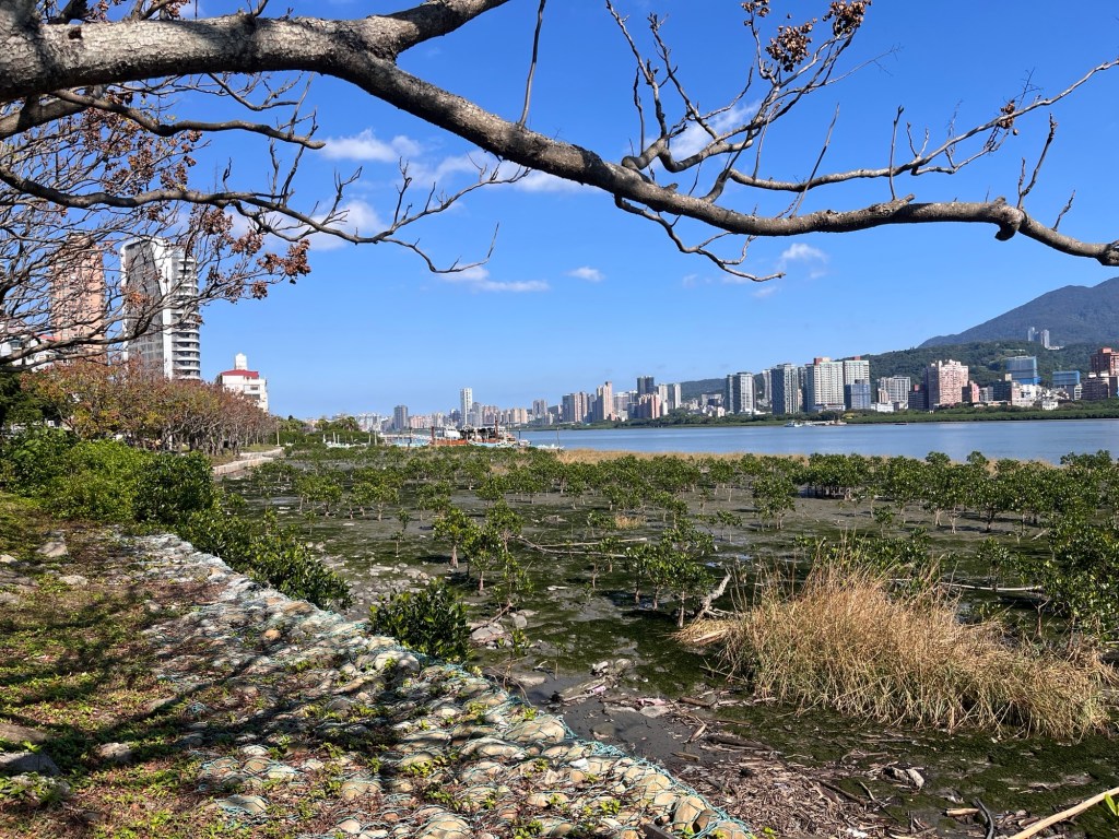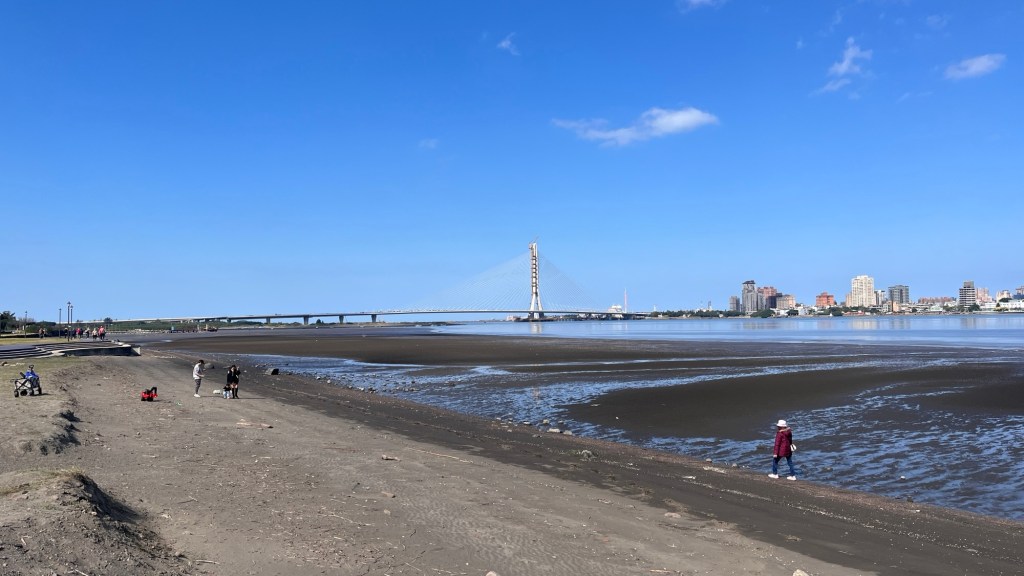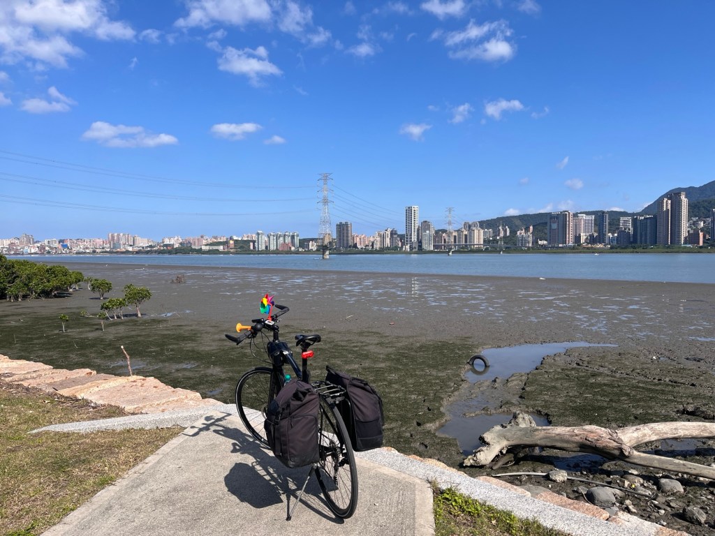 Also mache ich mich schnell fertig und komme um gut halb elf aus dem Haus. Natürlich ist das nicht früh, aber ich habe mir bewusst Schlaf gegönnt und trotzdem habe ich noch fast zwei Stunden mehr als gestern. Das Wetter ist wieder bombastisch, das samstägliche Tamsui mit seinen inländischen Touristen voll belebt. Um an der Küste fahren zu können, muss ich einen Umweg ins Inland nehmen, denn die große „Tamkang-Brücke“ wird leider erst nächsten März in Betrieb genommen. Das Fahren am Flussufer macht aber dennoch Spaß, gerade weil man eine Yogagruppe mit chinesischer Motivationsmusik nach der nächsten passiert und es mal wieder einen Fahrradweg gibt, der abseits der verkehrigen Straßen dahinidyllisiert. Geil, wie ich nicht einmal danach Ausschau halte und trotzdem immer wieder auf einen gelange. Nicht fehlen dürfen wieder die vielen Hochhäuser, die die sehr hohen Einwohnerzahlen von Taipei und Neu-Taipei erklären dürften (zusammengerechnet über 7 Millionen Einwohner).