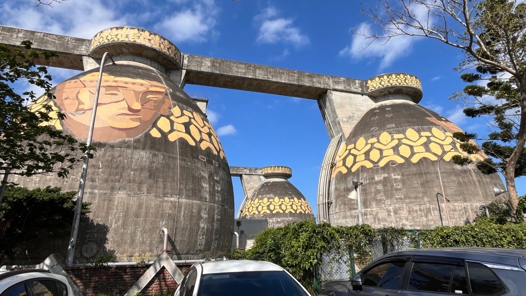 Schließlich biege ich ab, verlasse den Kiez, ab jetzt geht es südwestwärts. Ein langer Streckenabschnitt mit Industriebauten, teilweise kuriosen Anlagen wartet auf mich. Dabei darf ich bewundern, wie die Taiwanesen es trotz aller Grobheit im Straßenbild schaffen, eine gewisse Liebe zum Bauwerk einzubringen. Sei es Grafitti, ein schwungvoll gebogener Brückearm, ein farbig bemaltes Bauteil oder ein stilvoller Kanal unterhalb der Autobahn.